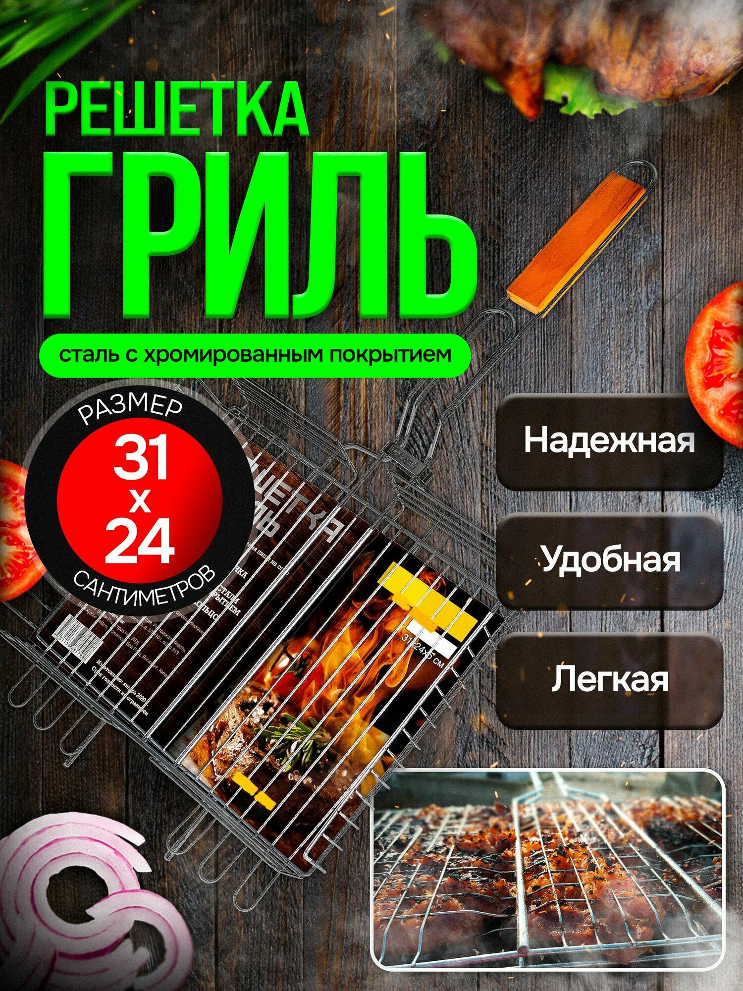 СохранитьРешетка для мангала и шашлыка , решётка для гриля из стали хромированной 31*24см интересное: