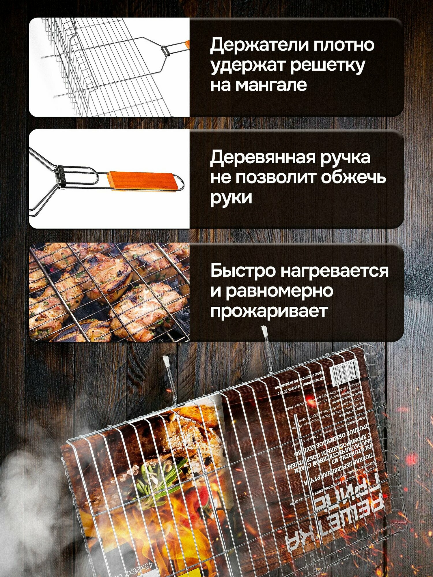СохранитьРешетка для мангала и шашлыка , решётка для гриля большая 45х26см интересное: