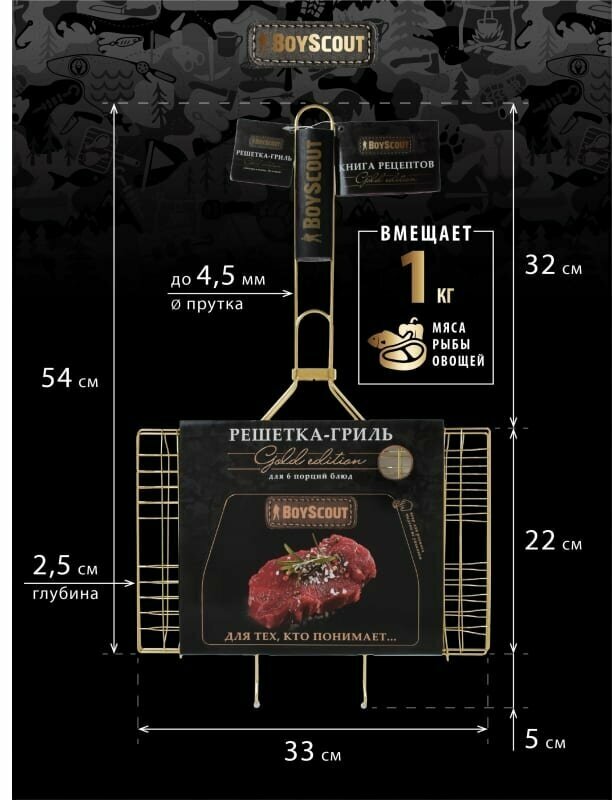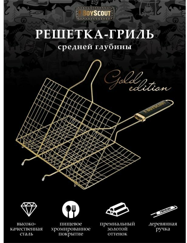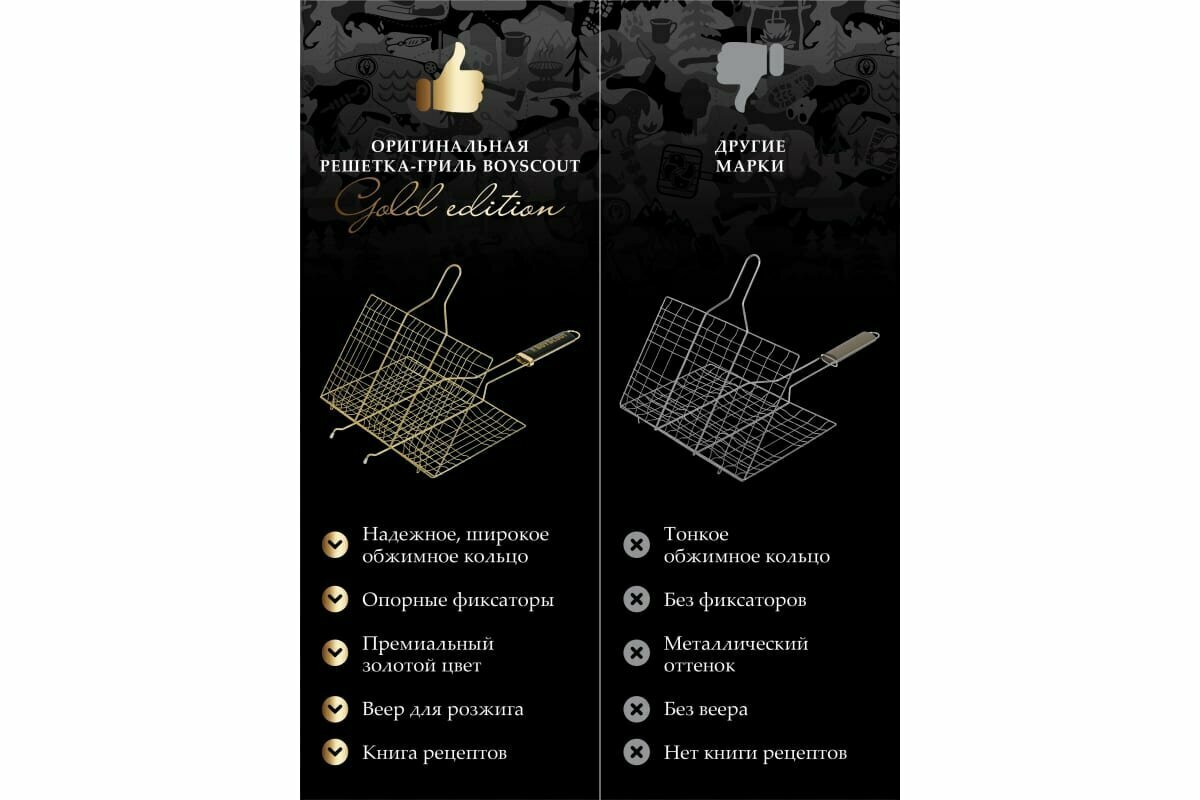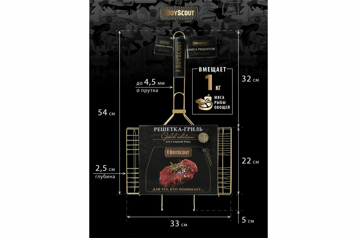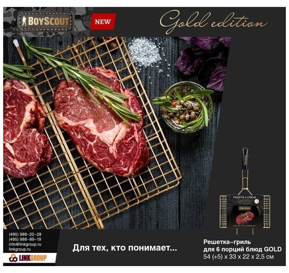 Решетка-гриль GOLD для 6 порций блюд, 54(+5)x33x22x2,5cм. BOYSCOUT интересное: