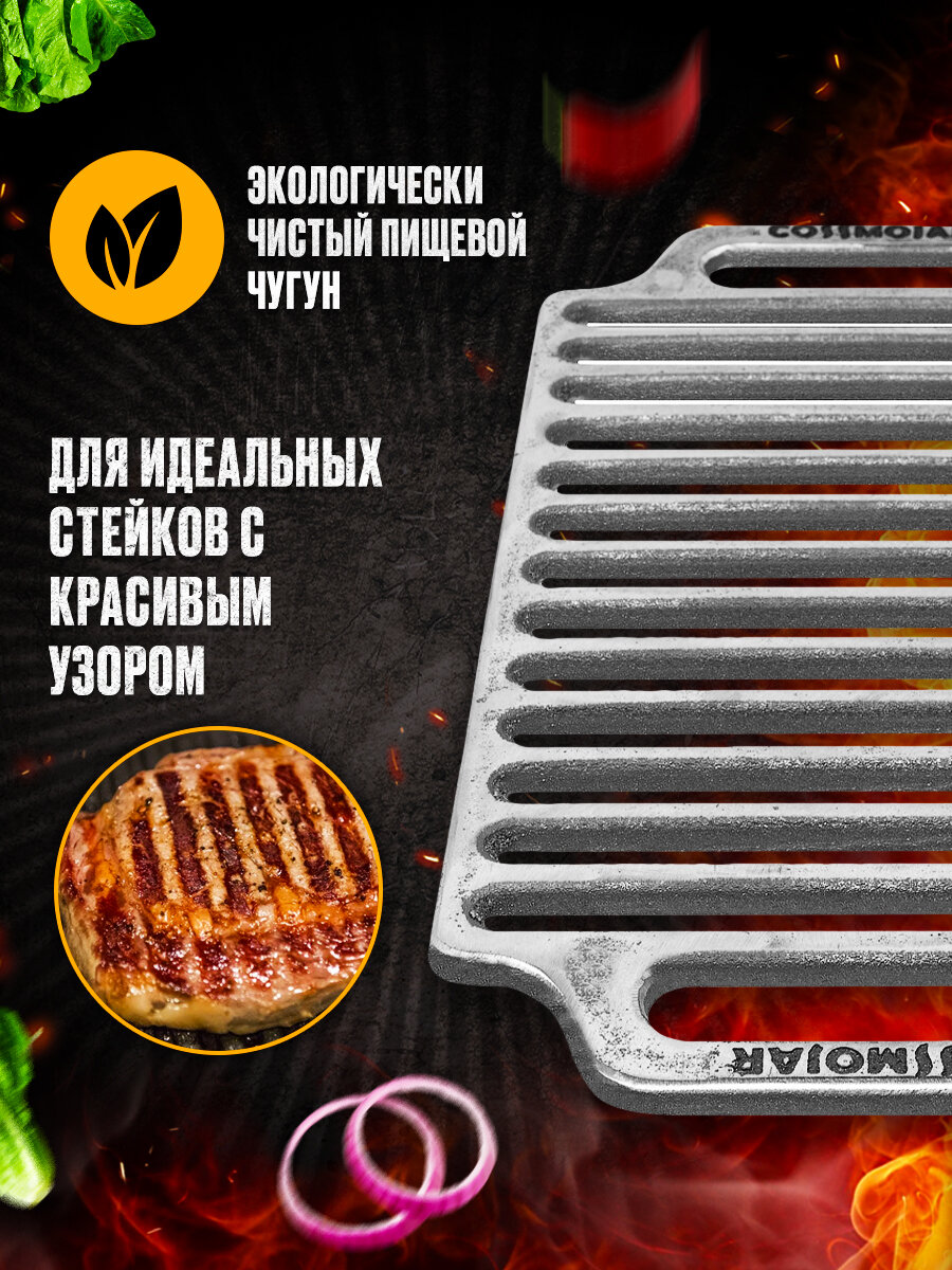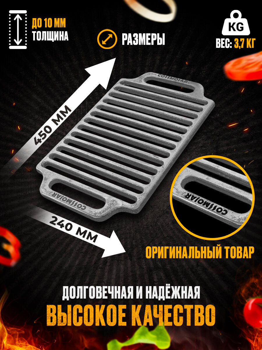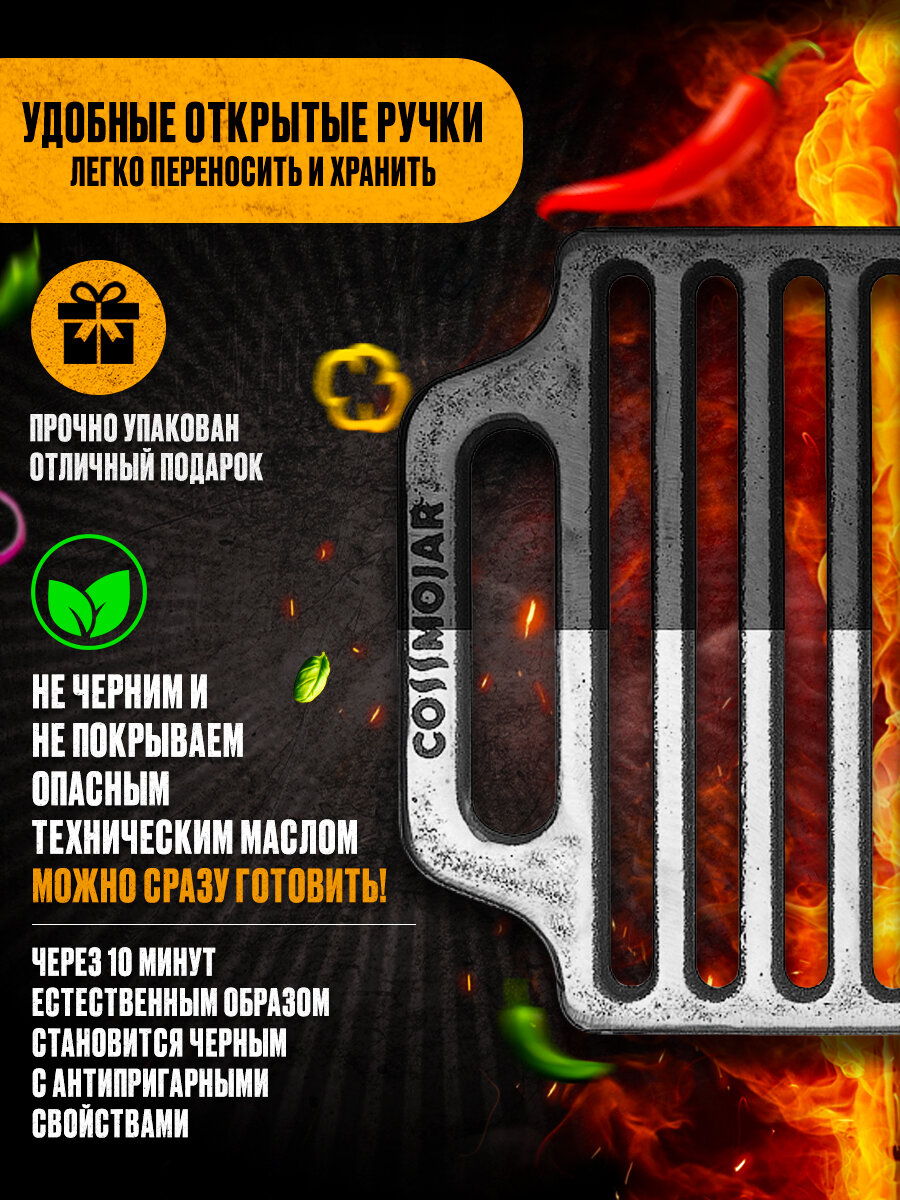 Профессиональная чугунная решетка 445*240*11 мм для гриля и барбекю на мангал интересное: