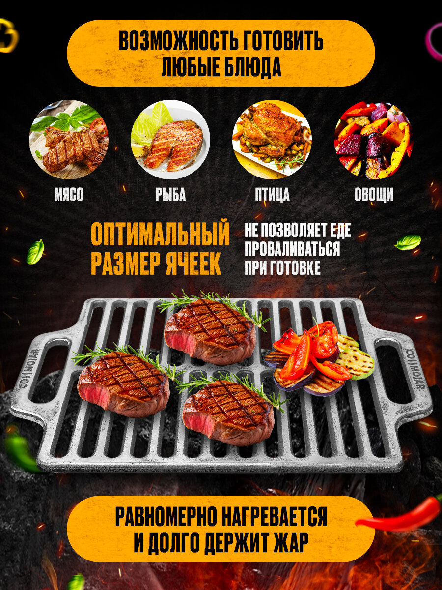 Профессиональная чугунная решетка 495*321*11 мм для гриля и барбекю на мангал интересное: