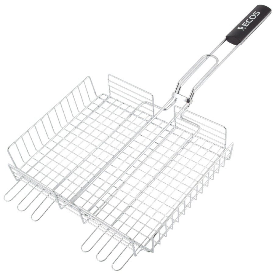 Решетка для барбекю ECOS RD-117W (рыбная, 3 секции, р-р 28х28х1,5см, общая длина 63 см, хром.)