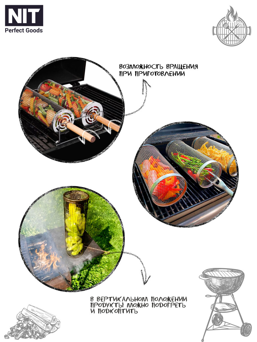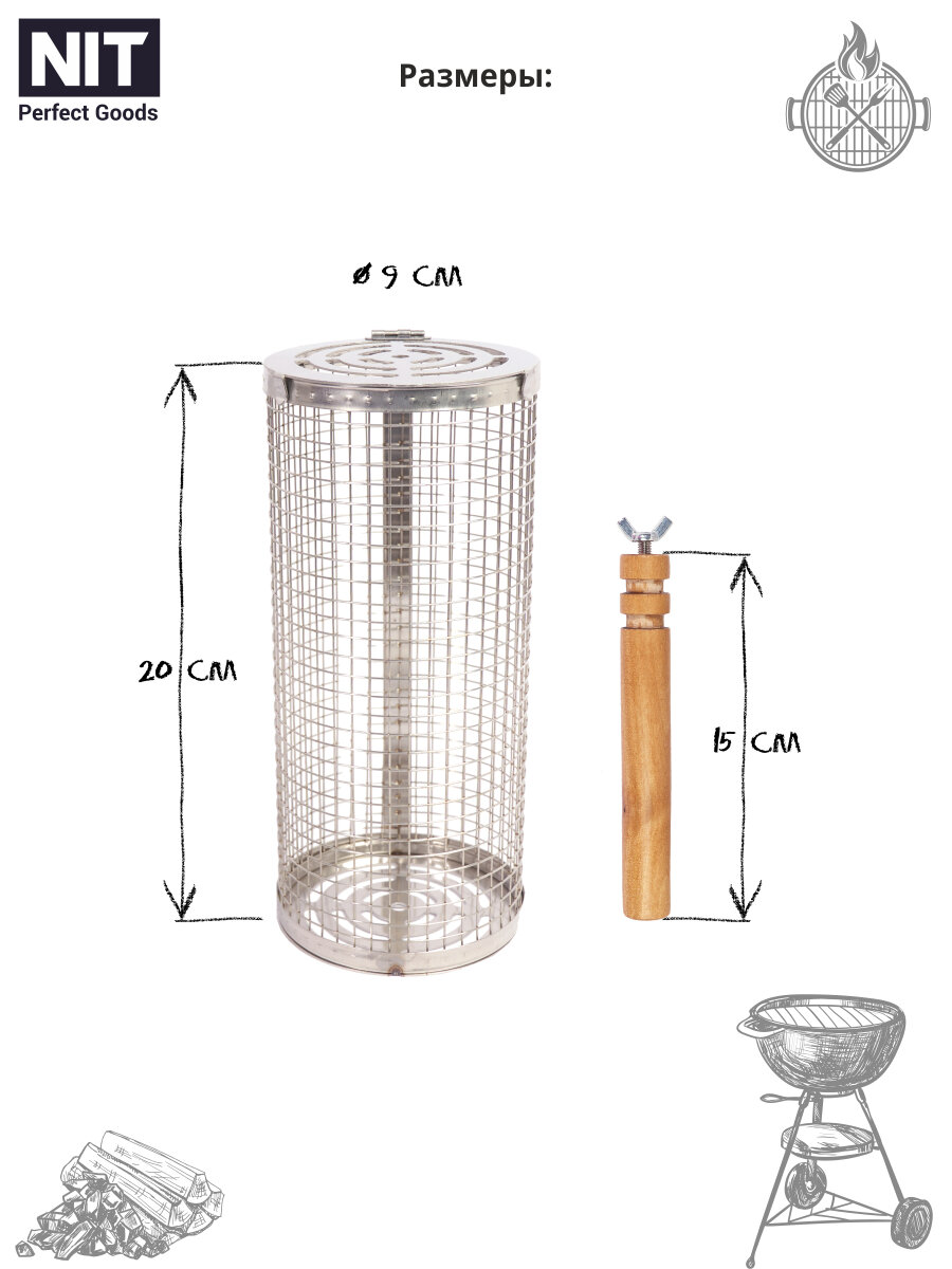 Решетка гриль круглая барбекю с деревянной ручкой NIT Perfect Goods, 20 см интересное: