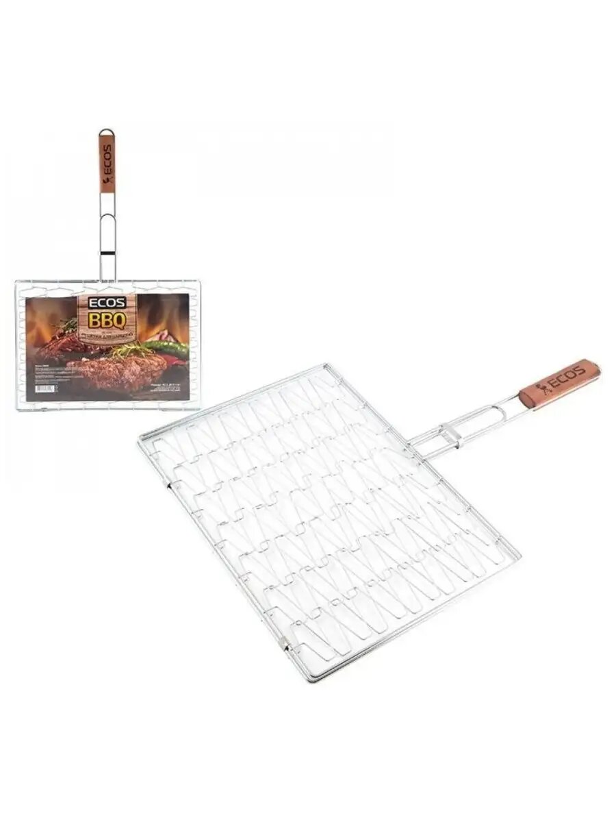 Решетка для барбекю ECOS RD-117W (рыбная, 3 секции, р-р 28х28х1,5см, общая длина 63 см, хром.)