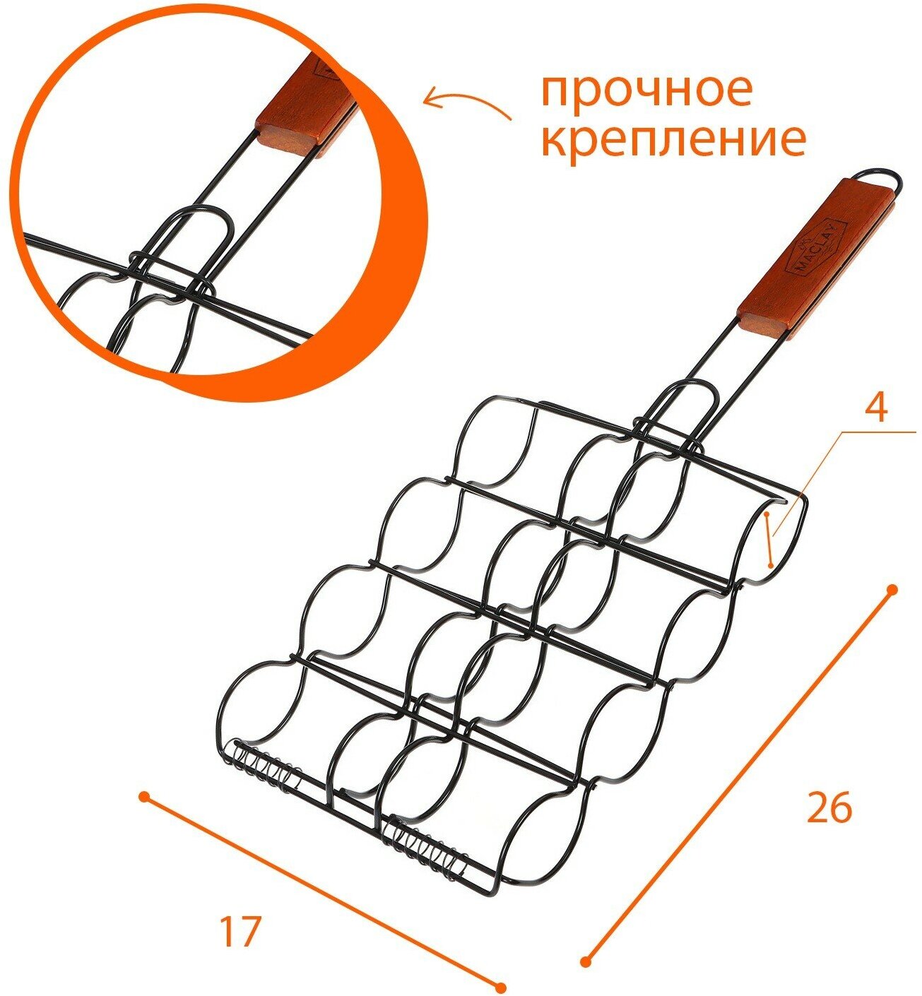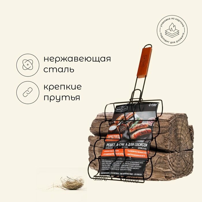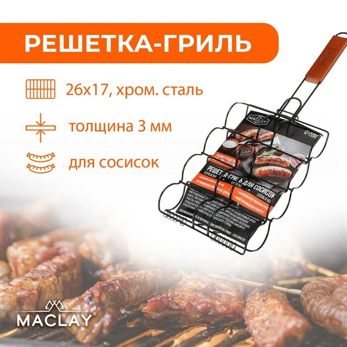 Решётка - гриль для сосисок maclay, 17х8.5 см, нержавеющая сталь, для мангала