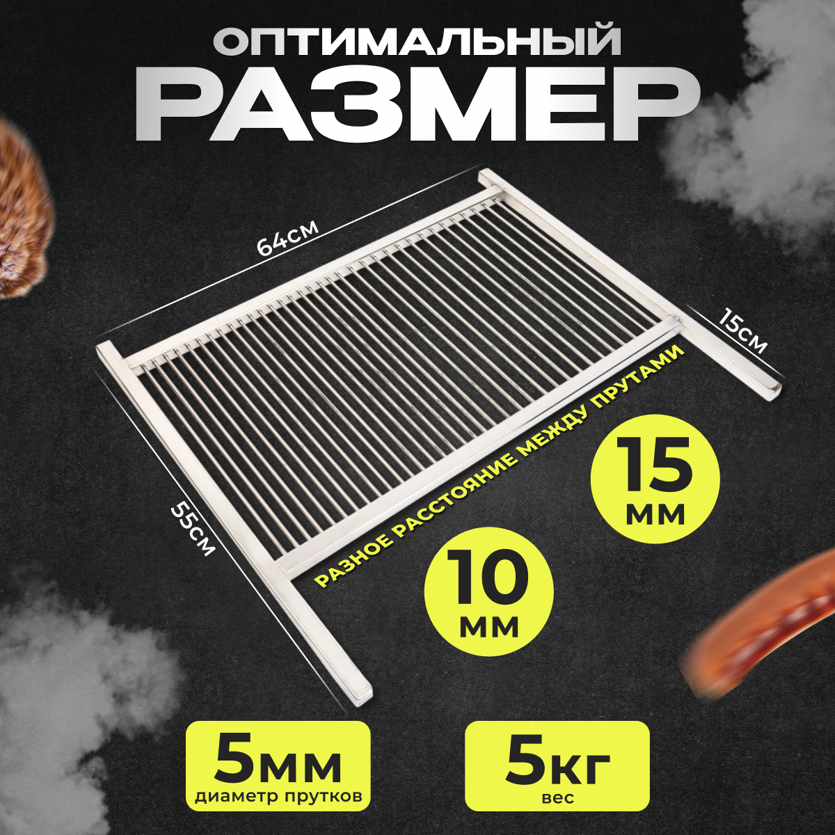 Решетка гриль из нержавейки для стейков, рыбы, грибов малая 40*65см 15мм между прутками