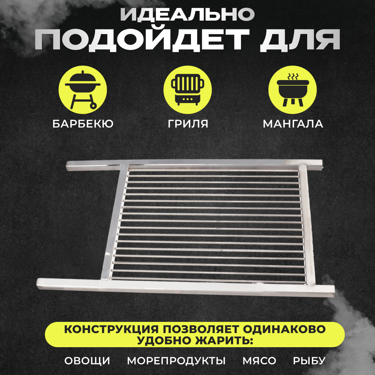 Решетка гриль из нержавейки для стейков, котлет, овощей, рыбы средняя 64*65см