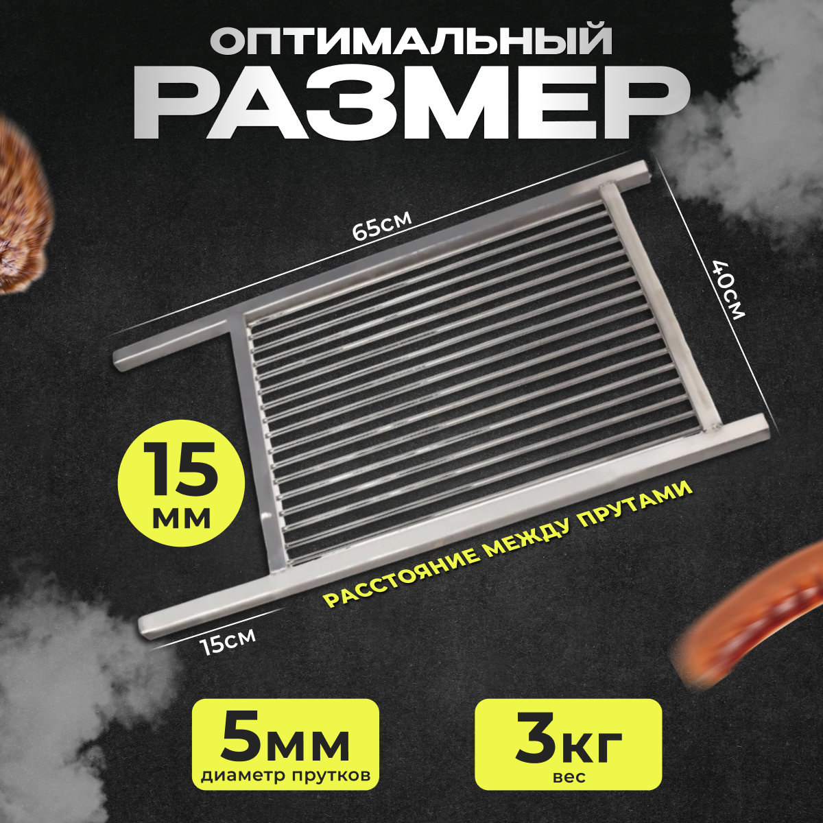 Купить Решетка гриль из нержавейки для стейков, рыбы, грибов малая 40*65см 15мм между прутками