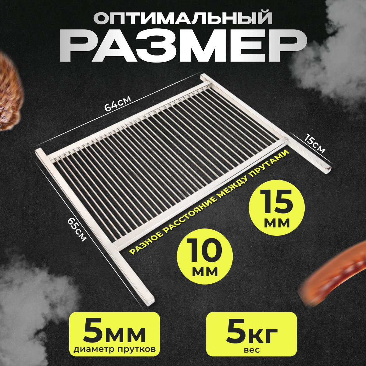 Решетка гриль из нержавейки для стейков, рыбы, грибов малая 40*65см 15мм между прутками