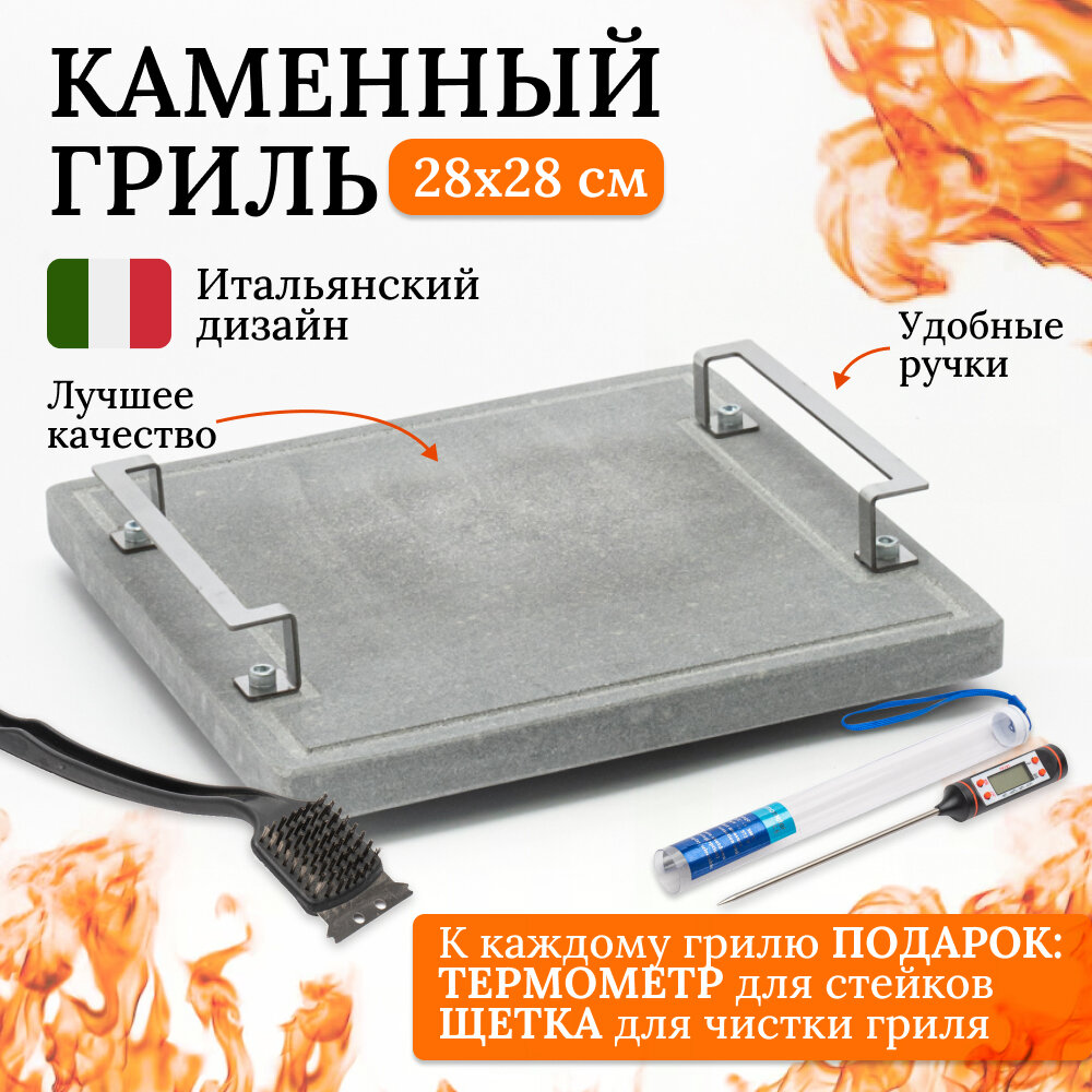Лучший. Каменный гриль с ручками. Лучше чем решетка для мангала "EТNA UNO" Вулканический камень 280х280 мм интересное: