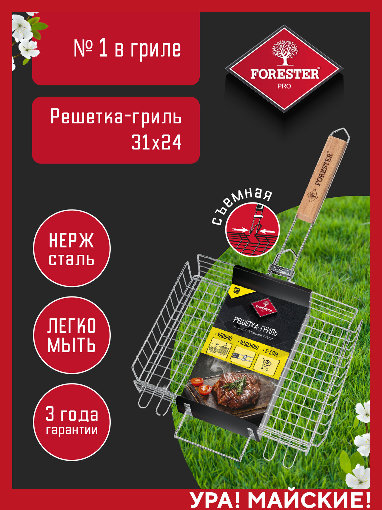 Решетка для гриля на мангал со съемной ручкой Forester ON 24х31 см нержавеющая сталь интересное:
