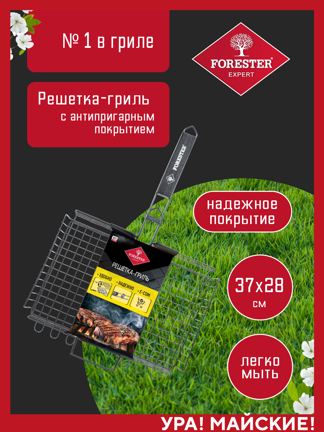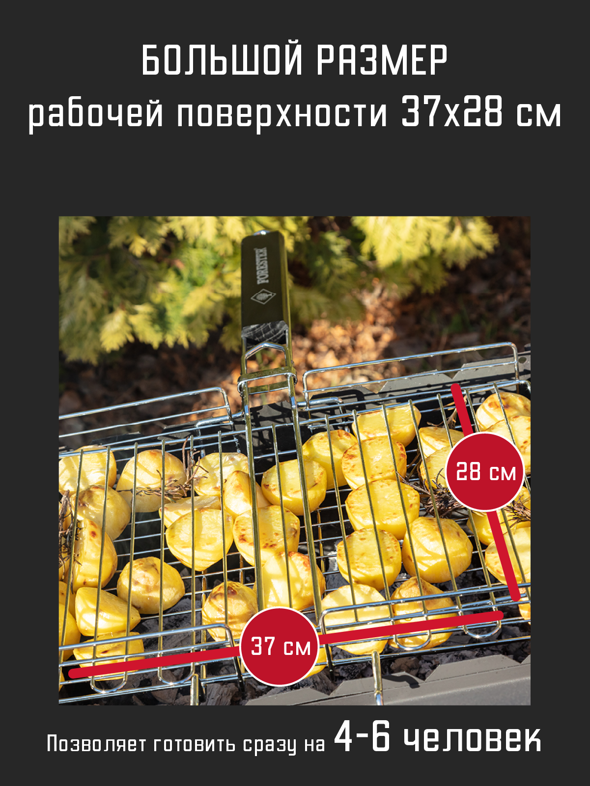 Решетка для гриля на мангал, 28х37см Forester ON объемная с антипригарным покрытием 28х37 см интересное: