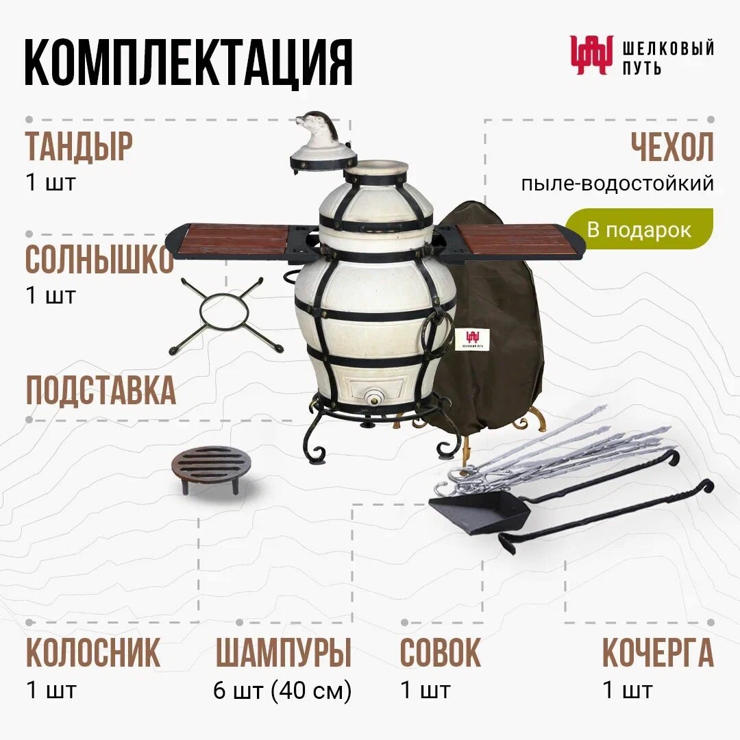Тандыр "Ахмат" с откидной крышкой + подставка, чехол и перчатки