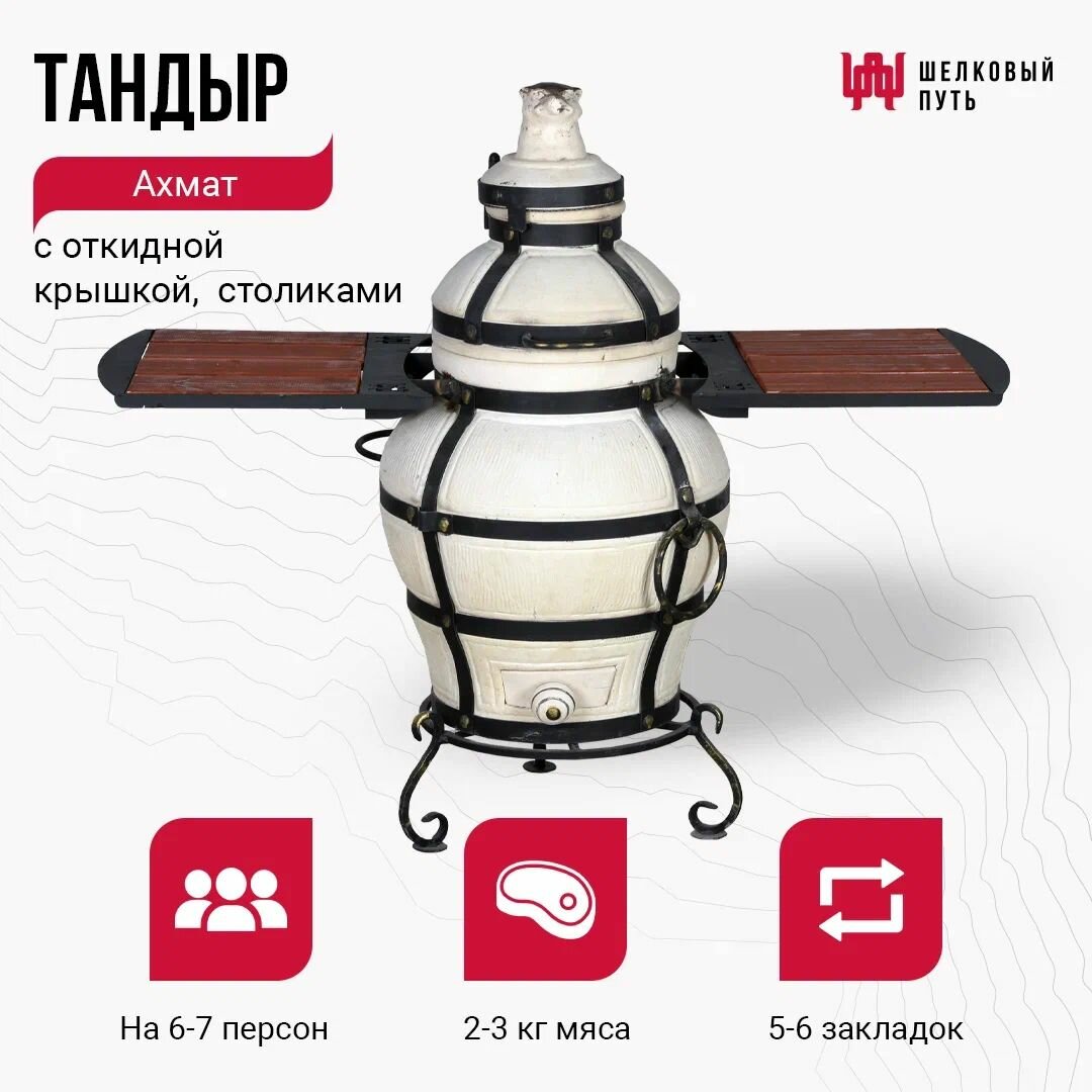 Тандыр Ахмат с откидной крышкой и столиками + подставка, чехол и перчатки