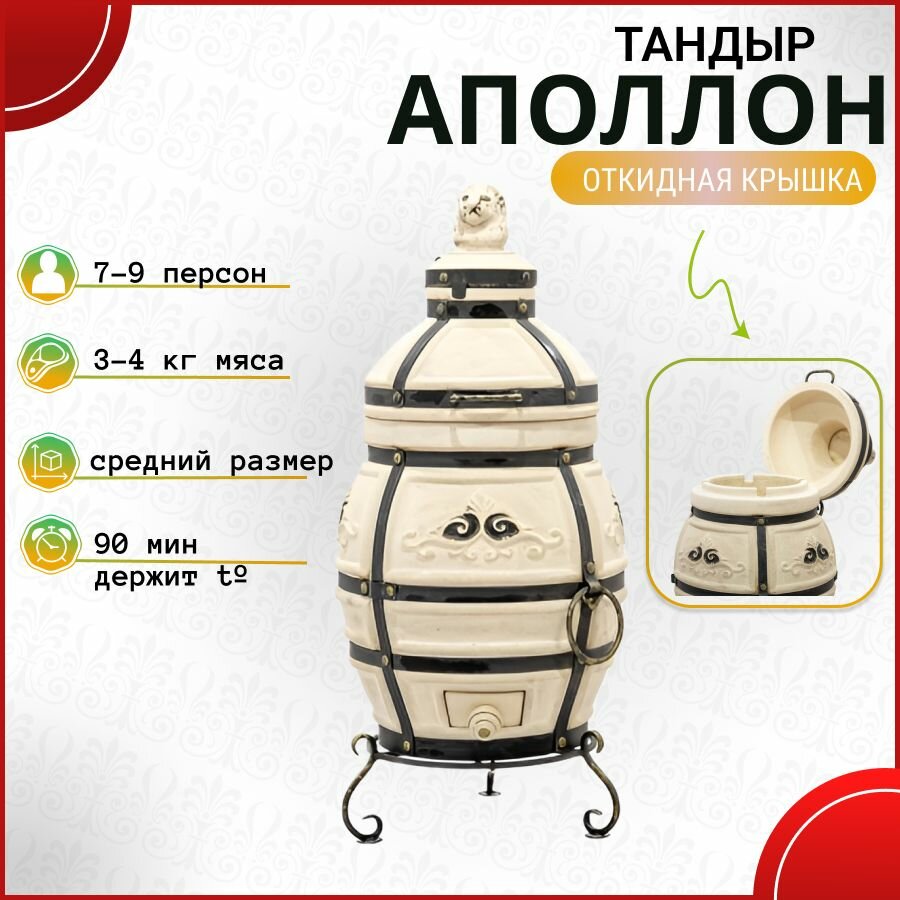 Аполлон с откидной крышкой - Комплект "Dacha" - тандыр для дачи средний - 50 л, Технокерамика. интересное: