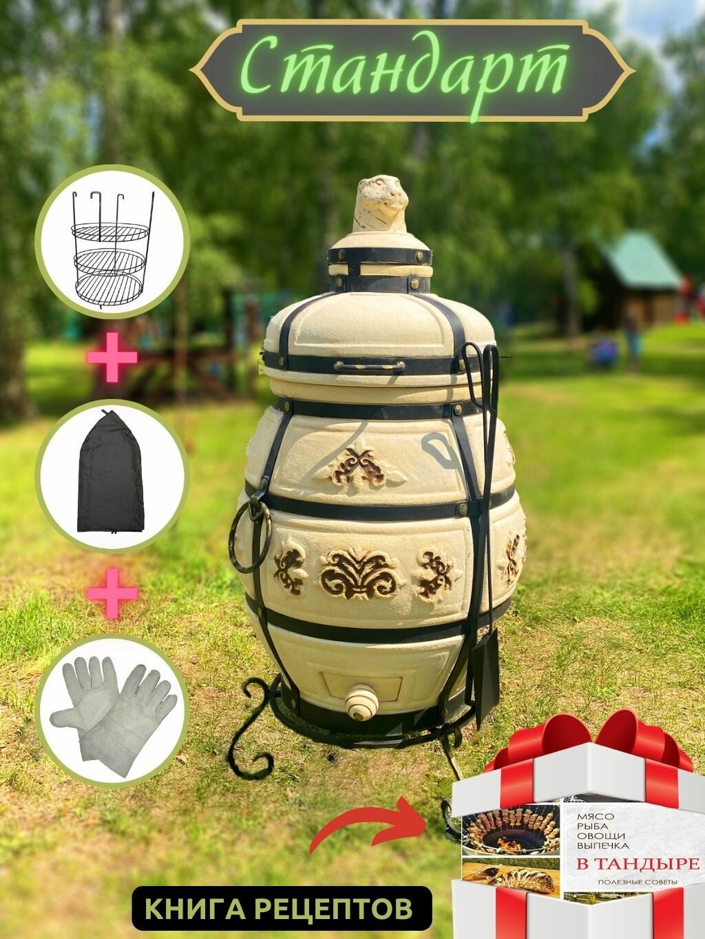 Тандыр "Ахмат" с набором аксессуаров и термометром + подставка и чехол