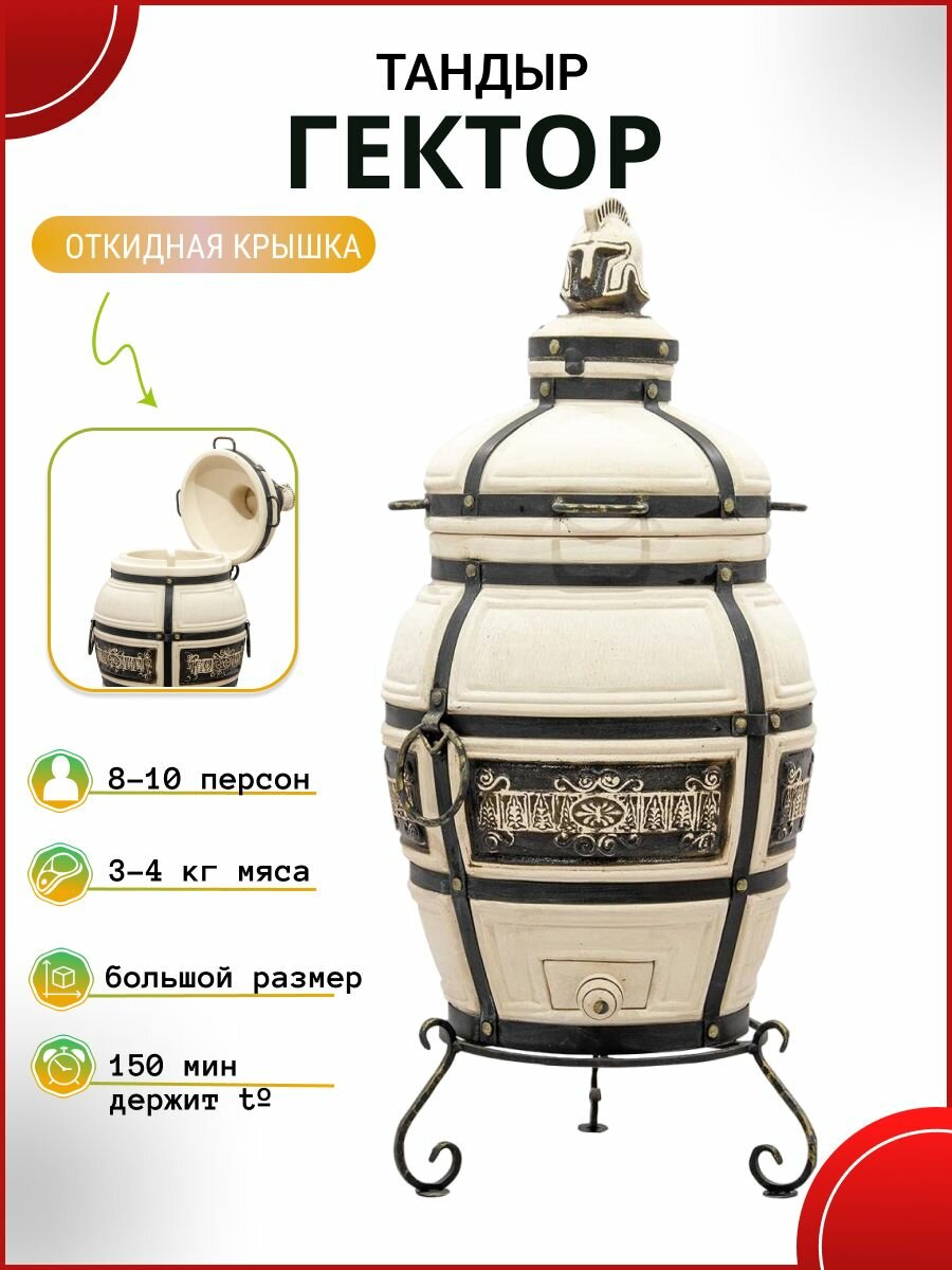 СохранитьГектор с откидной крышкой - тандыр для дачи большой с термометром (требует установки) - 75 л, Технокерамика. интересное: