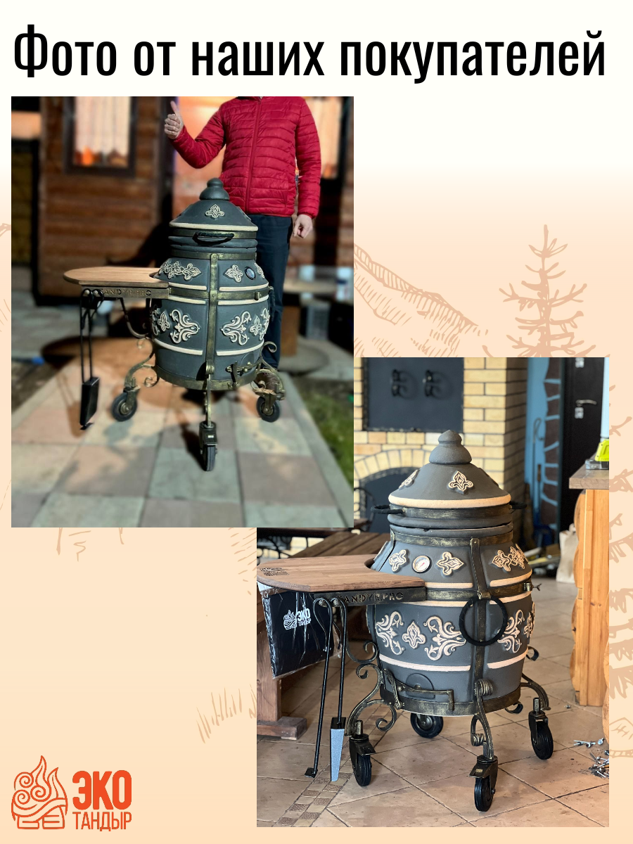 Тандыр ЭкоТандыр Фирменный на колесах, с откидной крышкой, с металлическим столиком, цвет графит