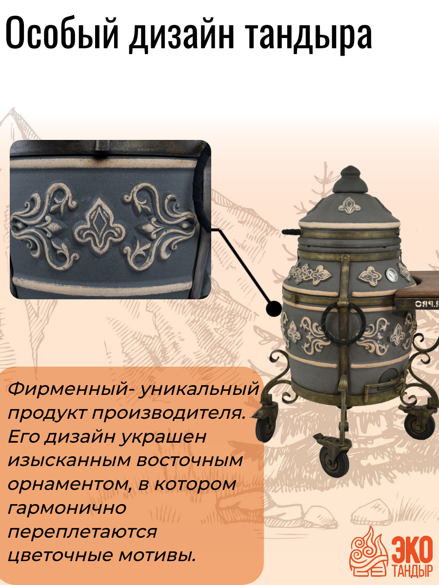СохранитьТандыр Фирменный с откидной крышкой, с двумя столиками с деревянной столешницей, на колесах, цвет графит интересное: