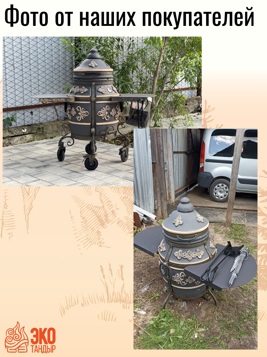 Ниже Вы можете прочитать отзывы на Тандыр Фирменный с откидной крышкой, с двумя металлическими столиками, на колесах, цвет графит, ознакомится с подробными характеристиками, посмотреть интересные обзоры и фотографии на Тандыр Фирменный с откидной крышкой, с двумя металлическими столиками, на колесах, цвет графит.