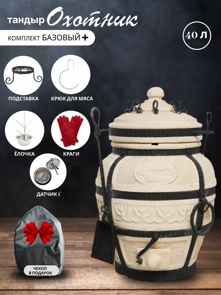 Охотник со съемной крышкой - Комплект "Базовый+" - тандыр средний с термометром (требует установки) - 40 л, Амфора. интересное: