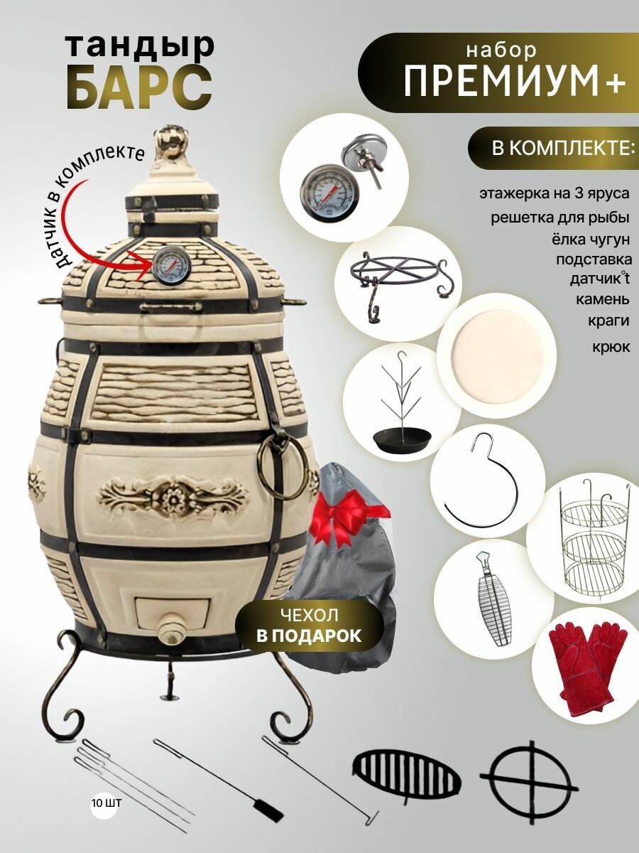 Купить Барс с откидной крышкой - Комплект "Премиум+" - тандыр для дачи большой с термометром (требует установки) - 85 л.