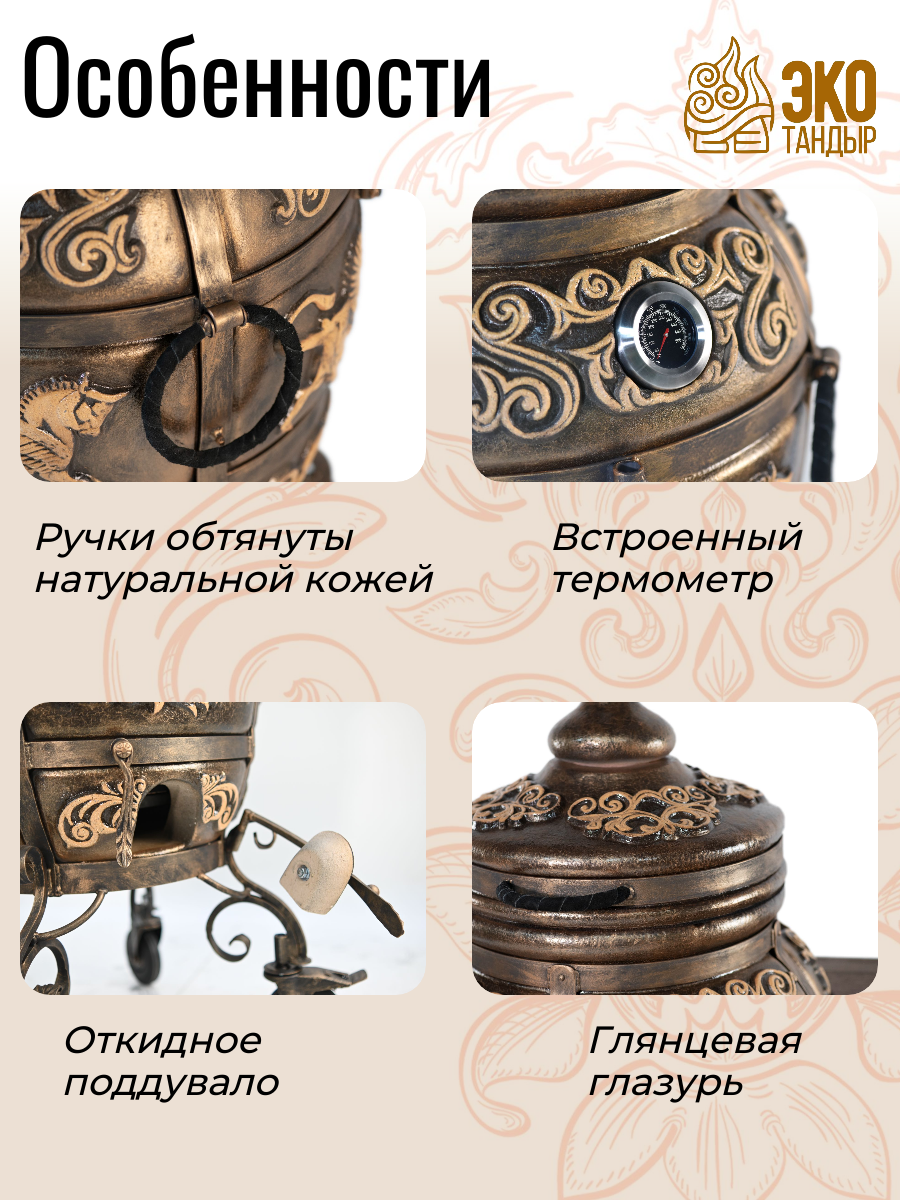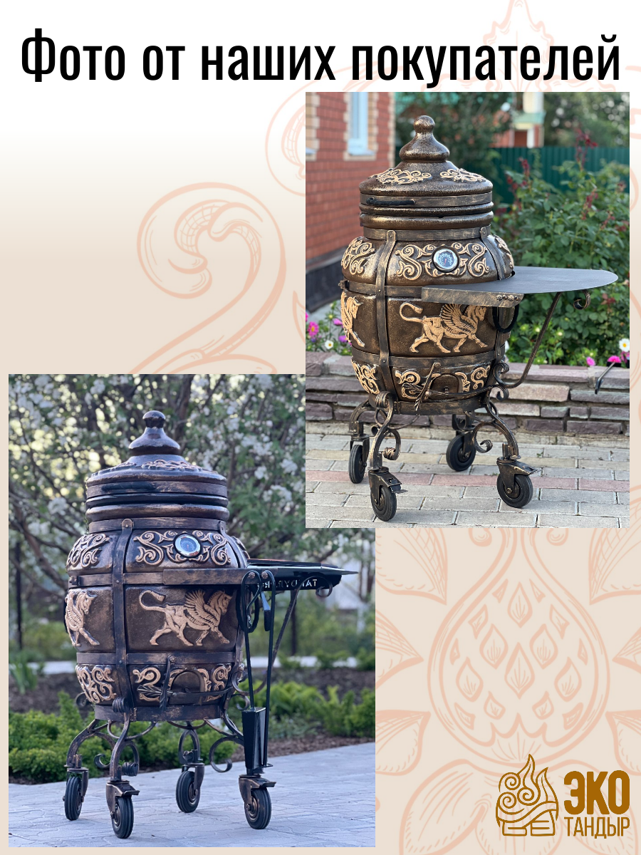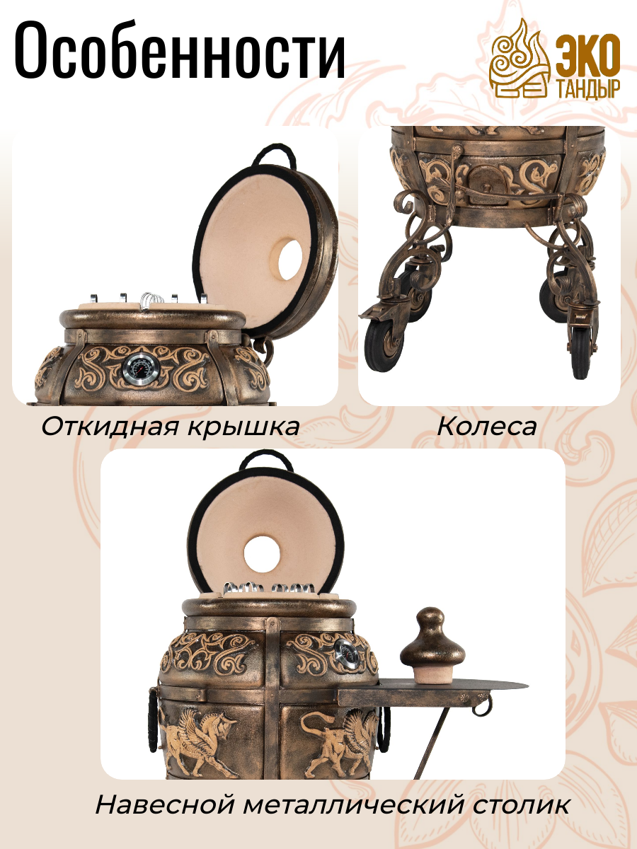 Тандыр Перс Толпар с откидной крышкой, с навесным столиком, на колесах, цвет черная патина интересное: