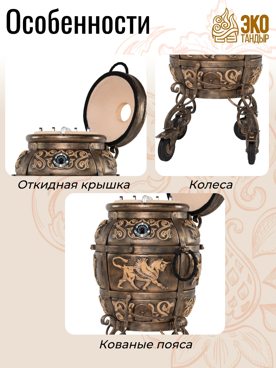 Тандыр Перс Толпар откидная крышка, на колесах, цвет черная патина интересное: