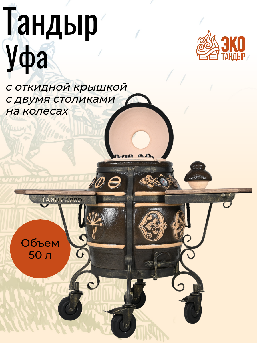 Тандыр ЭкоТандыр Уфа с откидной крышкой, с металлическим столиком, на колесах, цвет черный