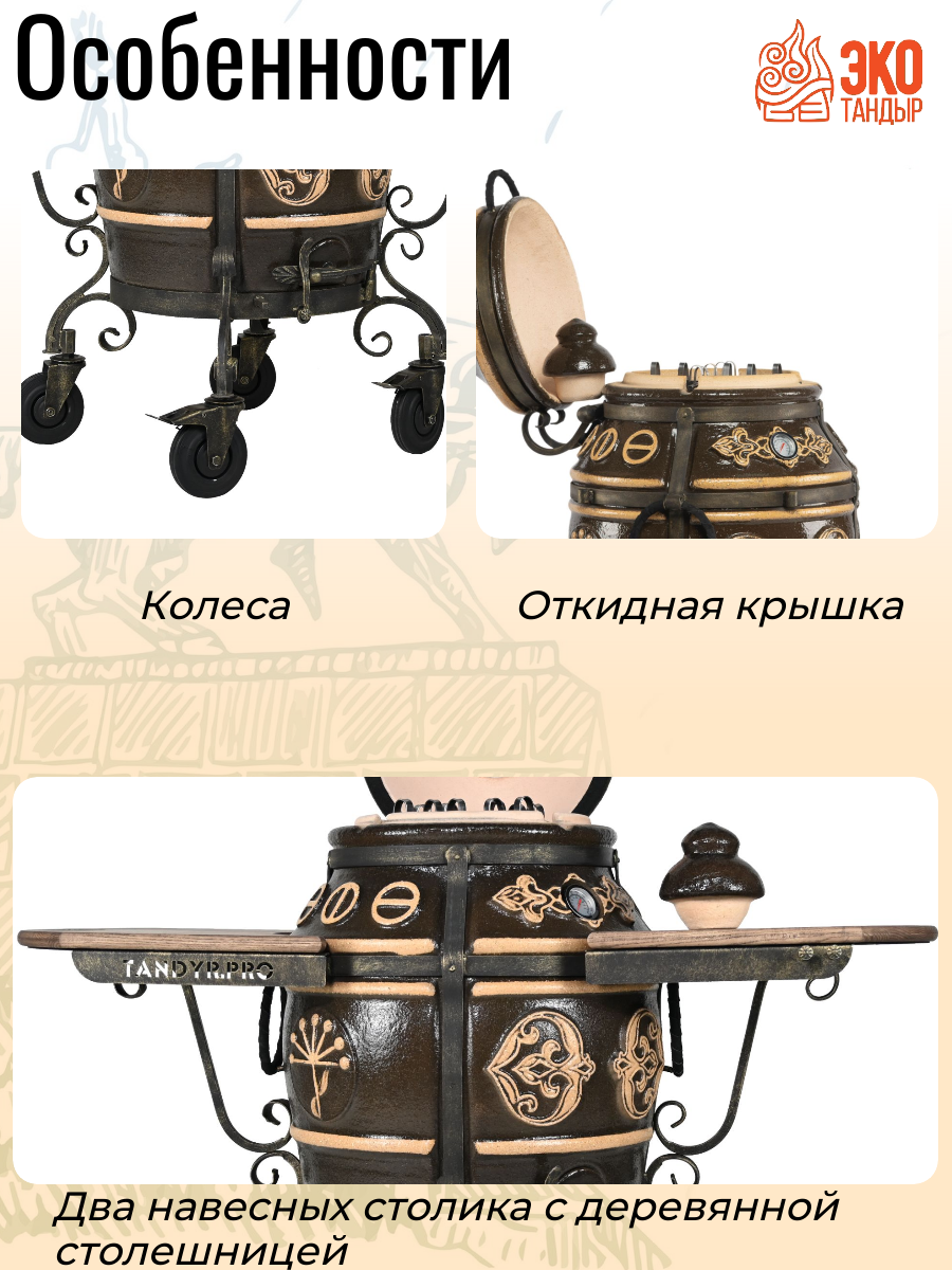 СохранитьТандыр Уфа с откидной крышкой, с 2-мя столиками с деревянной столешницей, на колесах, цвет темный шоколад интересное: