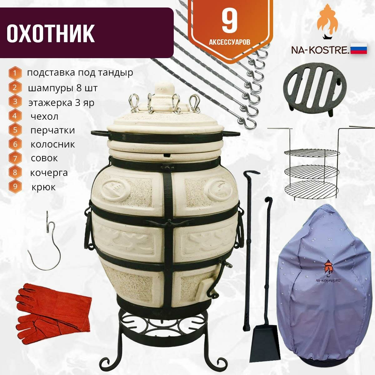 Тандыр Охотник с откидной крышкой + аксессуары комплект "Full Октябрь" (Амфора)