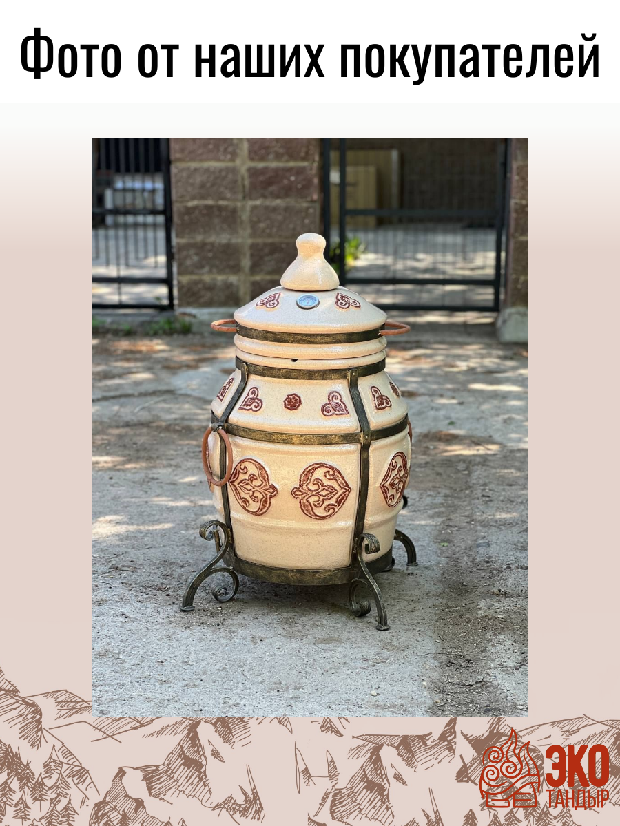 Тандыр ЭкоТандыр Урал с откидной крышкой, цвет слоновая кость / чехол, набор рецептов в подарок