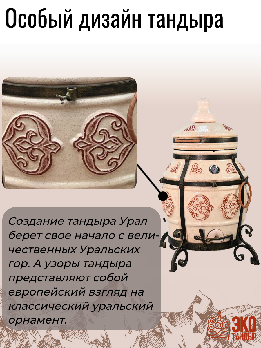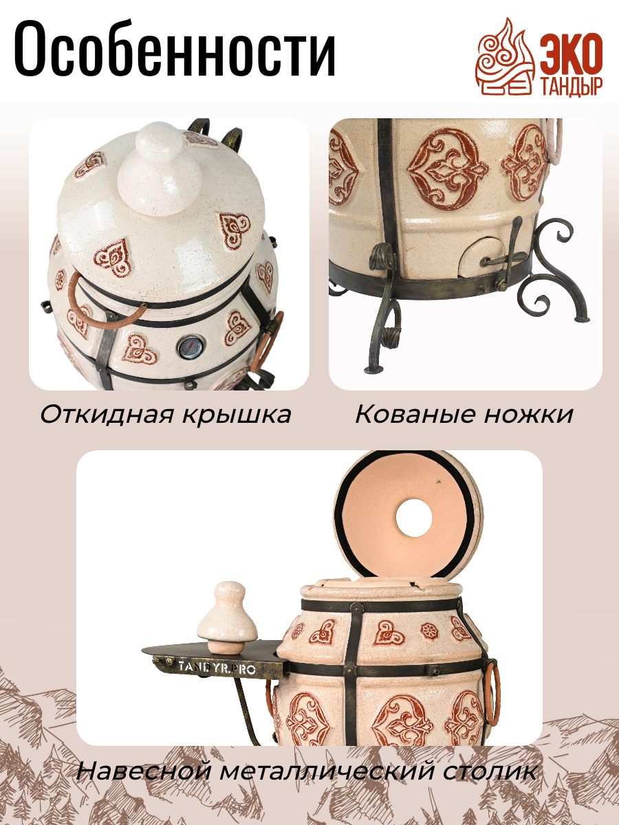 СохранитьТандыр ЭкоТандыр Урал с откидной крышкой, со столиком, цвет слоновая кость / чехол, набор рецептов в подарок интересное: