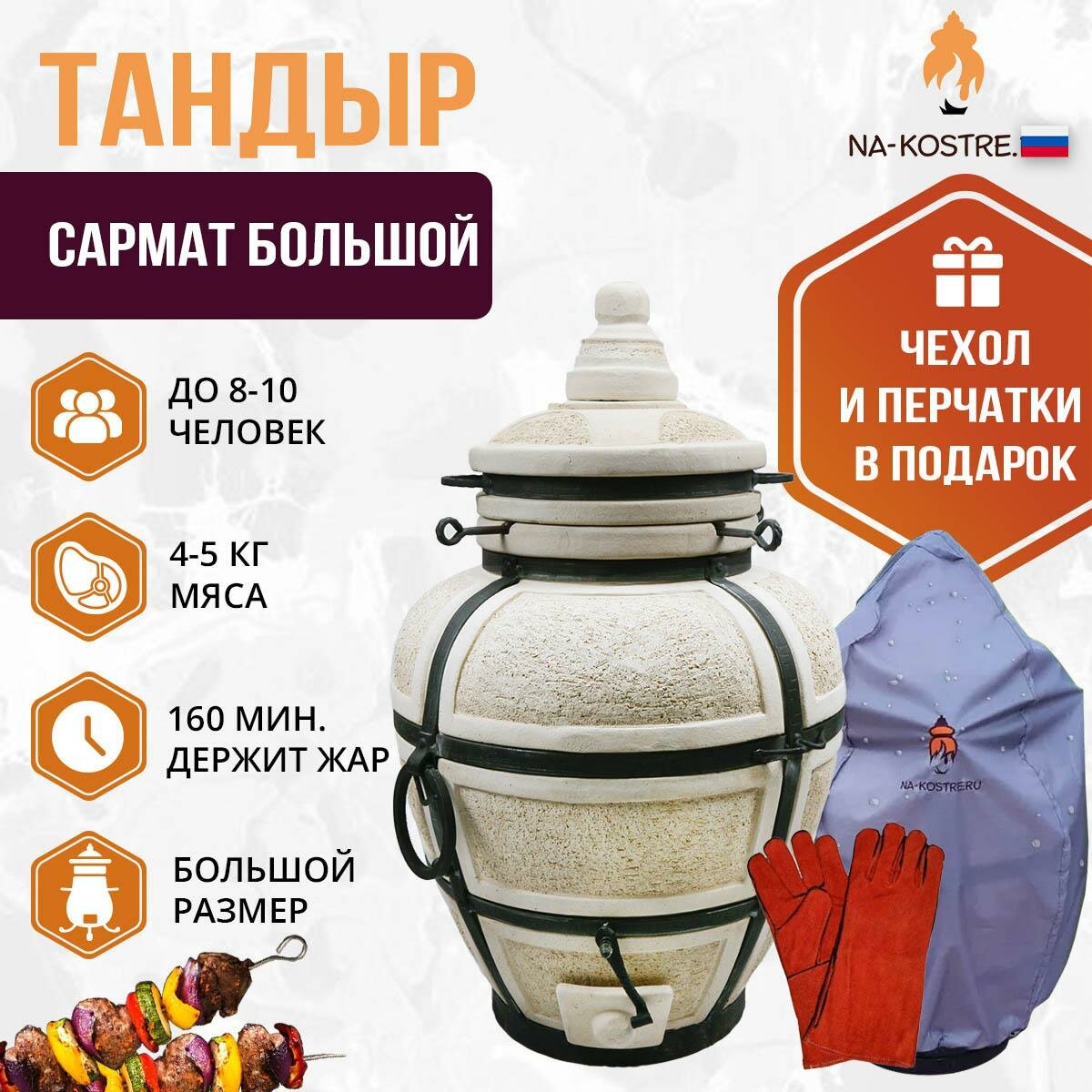 Купить Тандыр Сармат Большой (Амфора)+перчатки и чехол