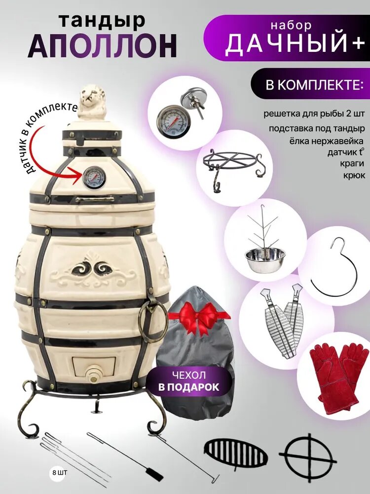 Аполлон с откидной крышкой - Комплект "Дачный+" - тандыр для дачи средний с термометром (требует установки) - 50 л интересное: