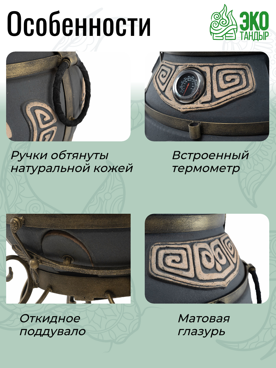 Тандыр ЭкоТандыр Шар с откидной крышкой, цвет графит / большой тандыр с матовой глазурью