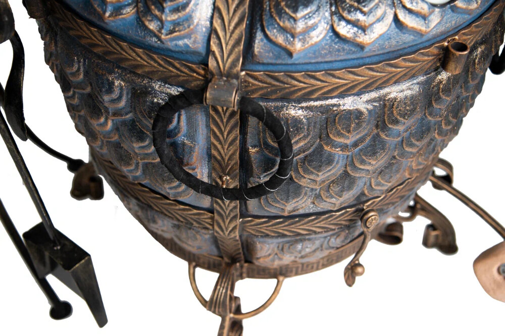Тандыр "ЭКОтандыр-Шёлковый-путь" с откидной крышкой и столиком, на колёсах, синий интересное: