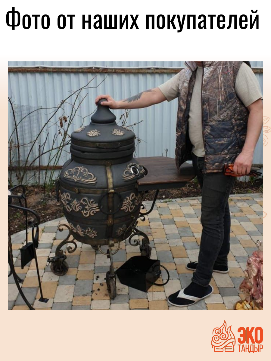 Тандыр ЭкоТандыр Гранд с откидной крышкой, c 2-мя столами, на колесах, цвет графит / большой тандыр для семьи