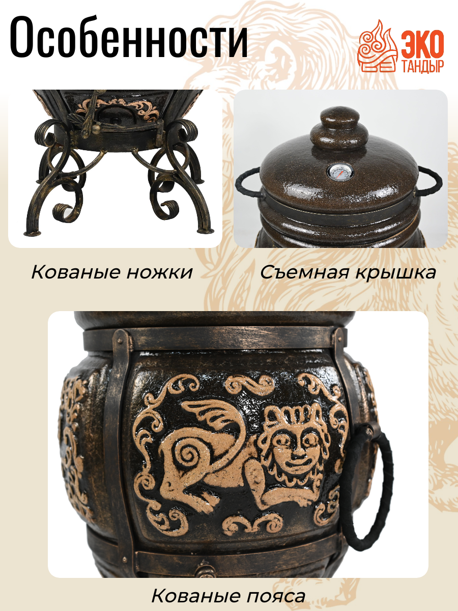 Тандыр ЭкоТандыр Арслан, съемная крышка, цвет черный / тандыр с подставкой и термометром в комплекте, чехол в подарок интересное: