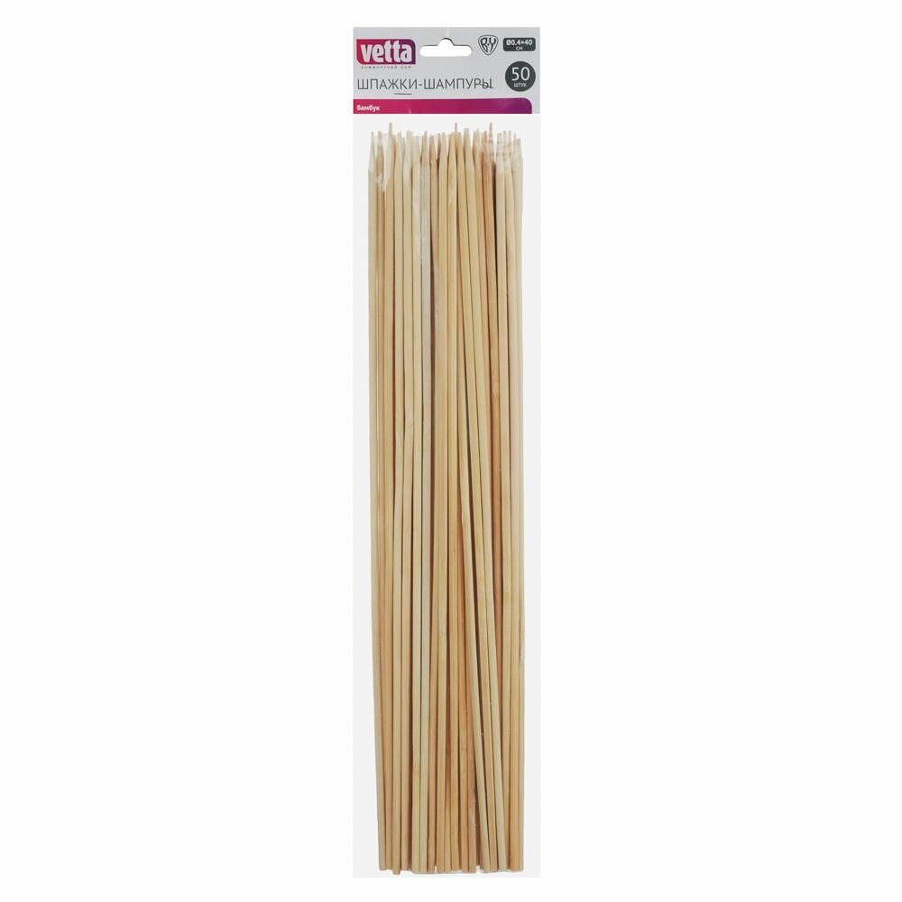 Шпажки деревянные VETTA, 40 см х 4 мм, 50 шт/шампуры из бамбука/бамбуковые палочки/шпажки-шампуры/для шашлыка, канапе интересное: