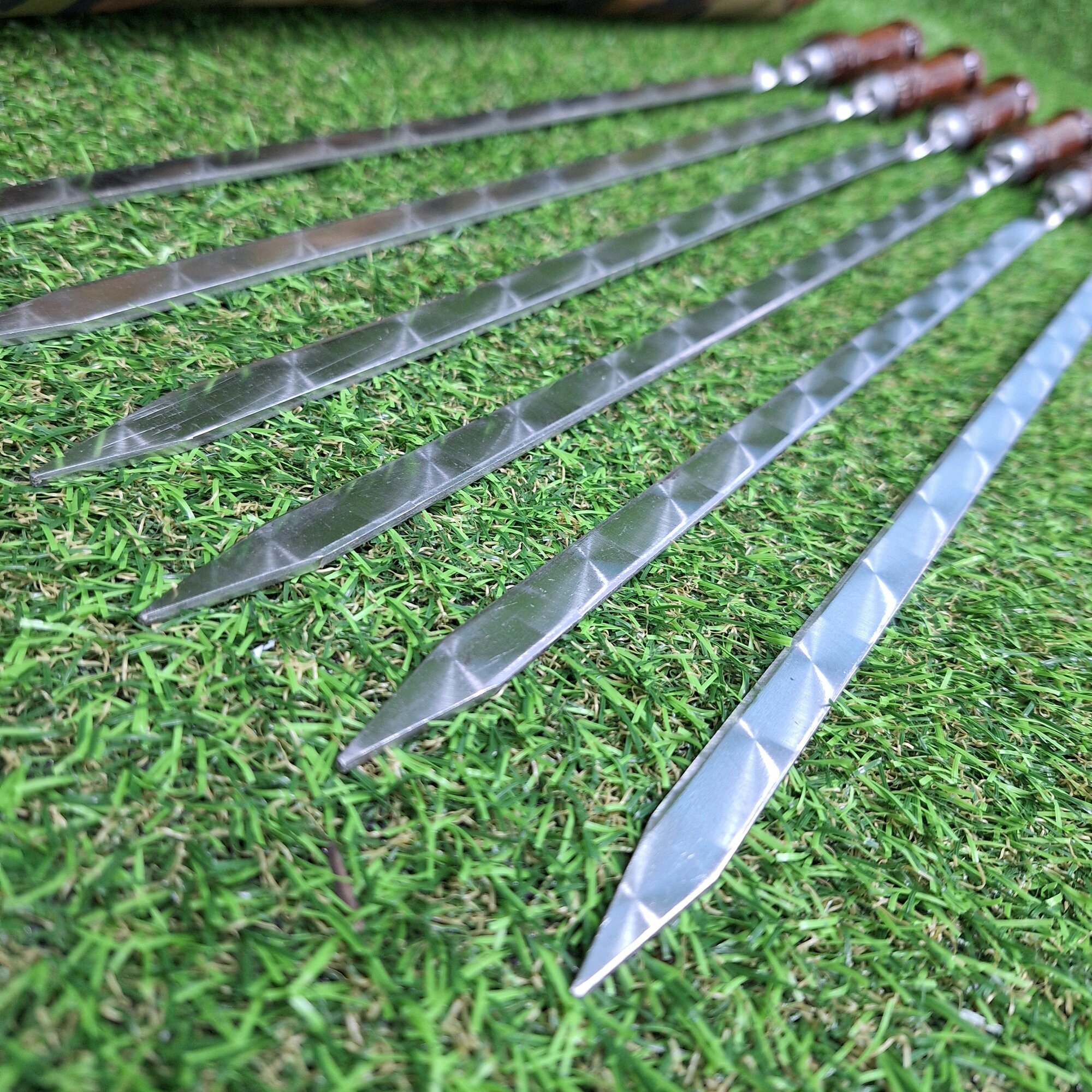 Набор шампуров с деревянной ручкой 62 см с ножом для снятия шашлыка