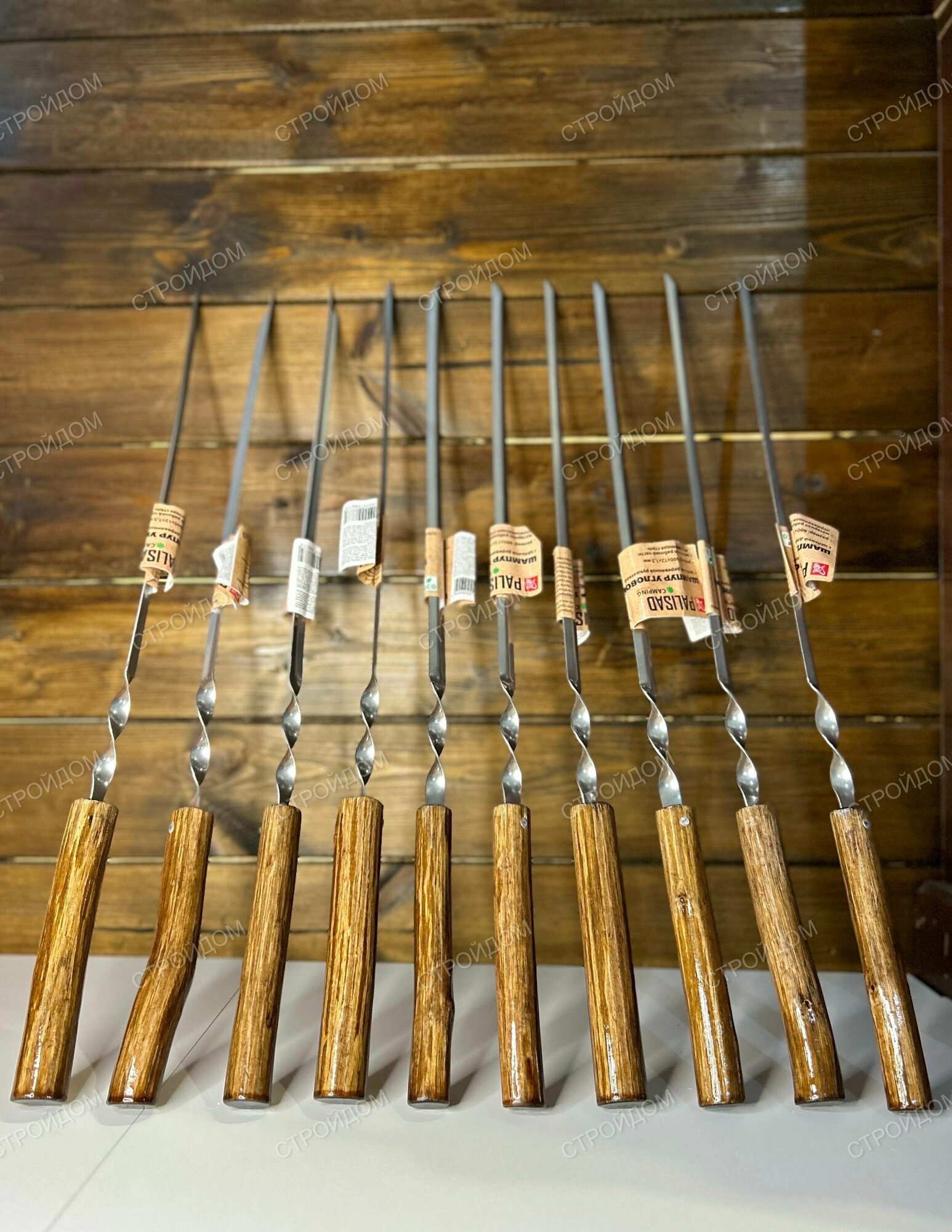 Шампур угловой с цельной деревянной рукояткой 600х12х1,5 мм 10 шт (нержавеющая сталь) PALISAD Camping 69670 интересное: