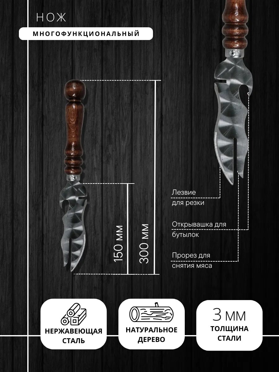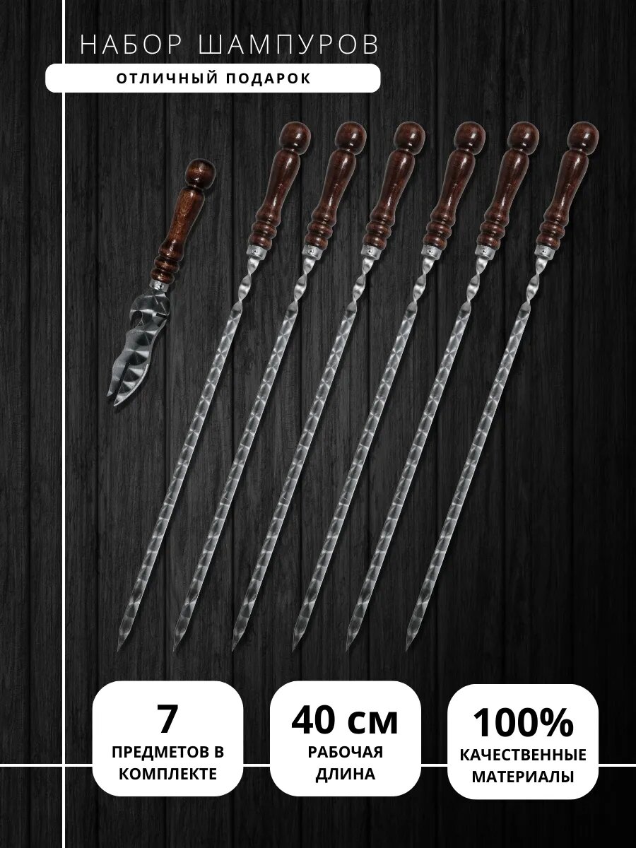 СохранитьНабор шампуров с деревянной ручкой для шашлыка 62 см с ножом для снятия шашлычный подарочный интересное: