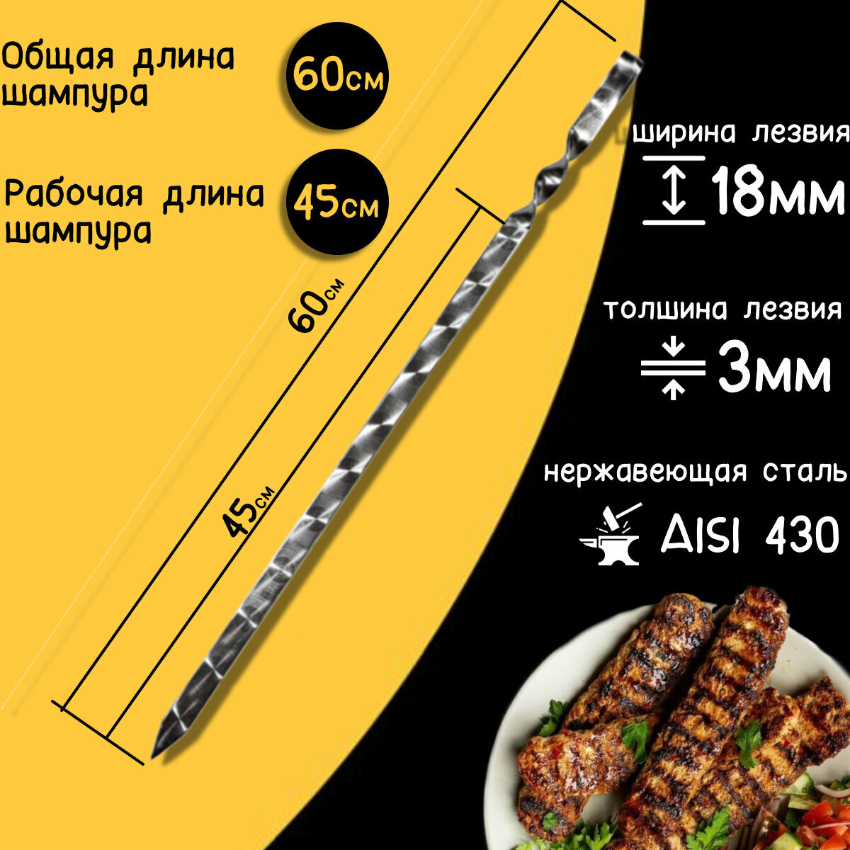 Шампуры для люля-кебаб 60 см 6 штук интересное: