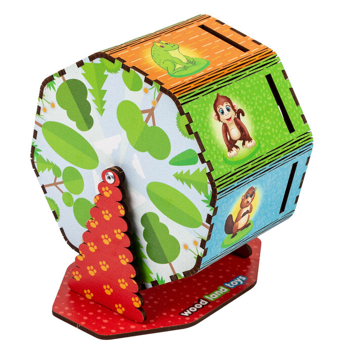 Деревянный сортер Барабан "Кто где живёт", развивающая логическая игрушка, учим животных, 15 фишек