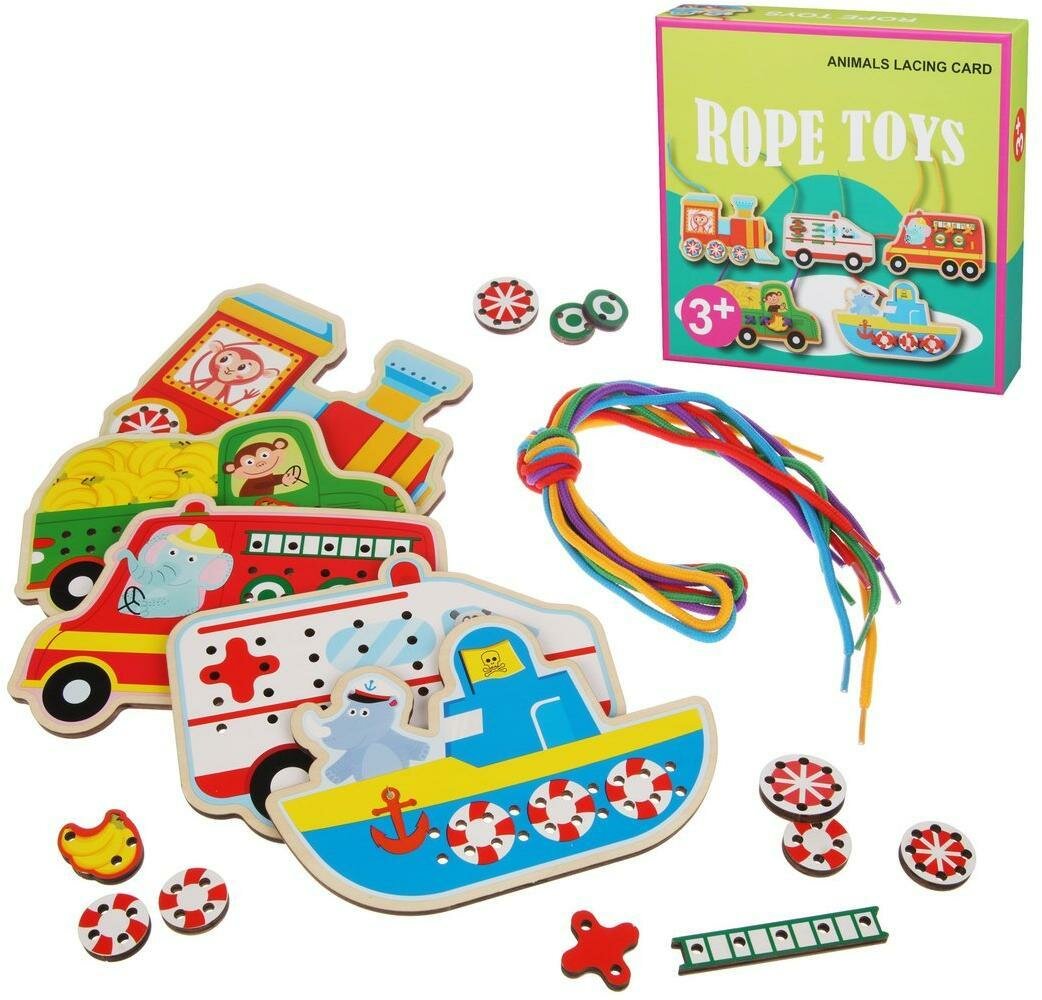 Набор для шнуровки "Транспорт" 20 деталей, Наша Игрушка zxl2019070305-37 интересное: