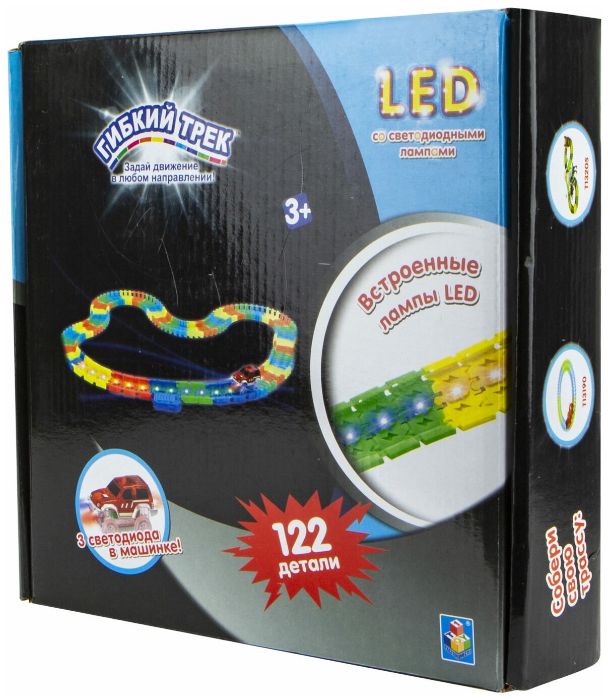 Купить 1toy Гибкий трек LED со светодиодными лампами, 122 дет. (11 дет.c LED),1 машинка с 3 ламп.