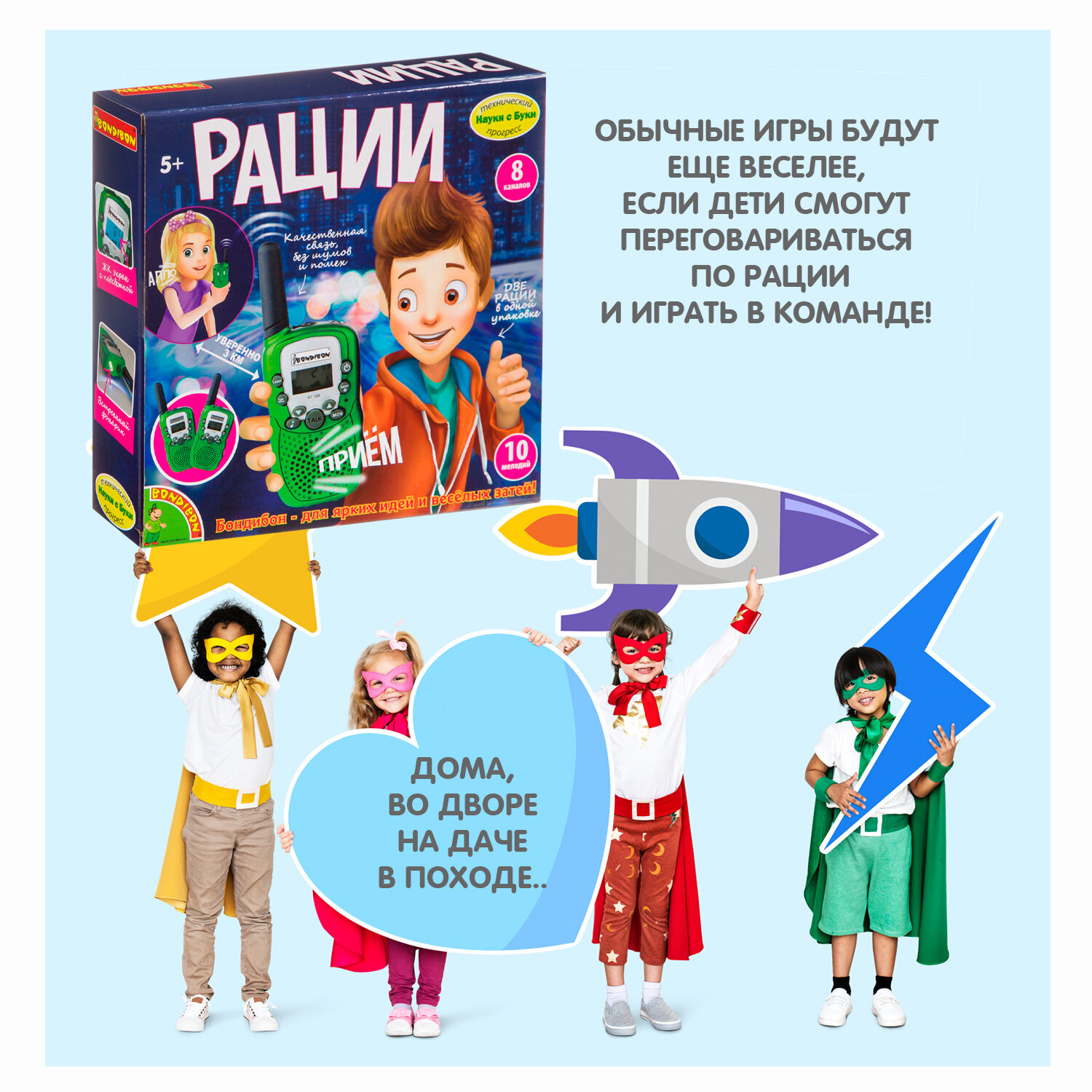 Ниже Вы можете прочитать отзывы на Игровой набор Bondibon ВВ4130 Рации 8 каналов, ознакомится с подробными характеристиками, посмотреть интересные обзоры и фотографии на Игровой набор Bondibon ВВ4130 Рации 8 каналов.