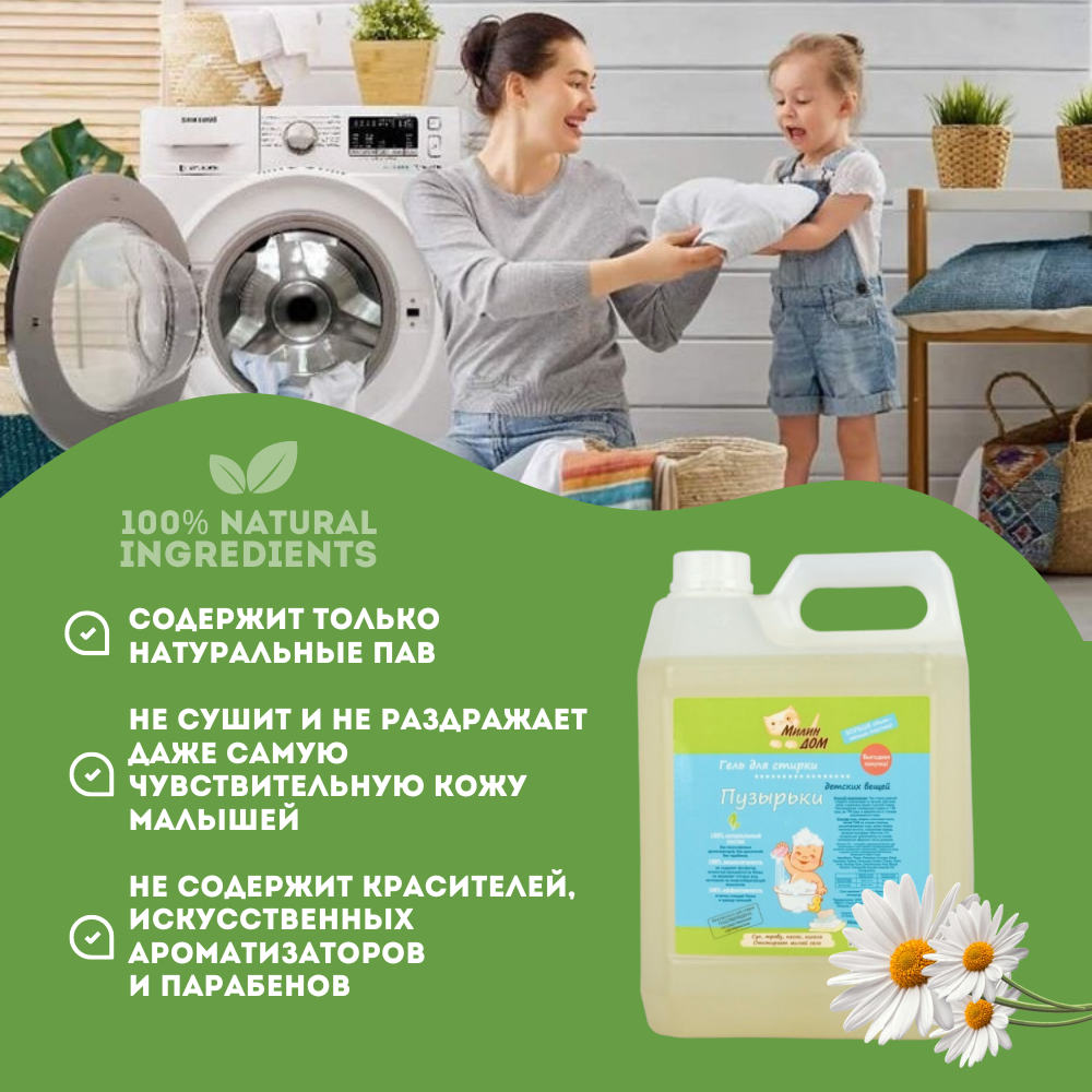 Милин Дом Гель для стирки детской одежды "Пузырьки" с ароматом ромашки, 5 л