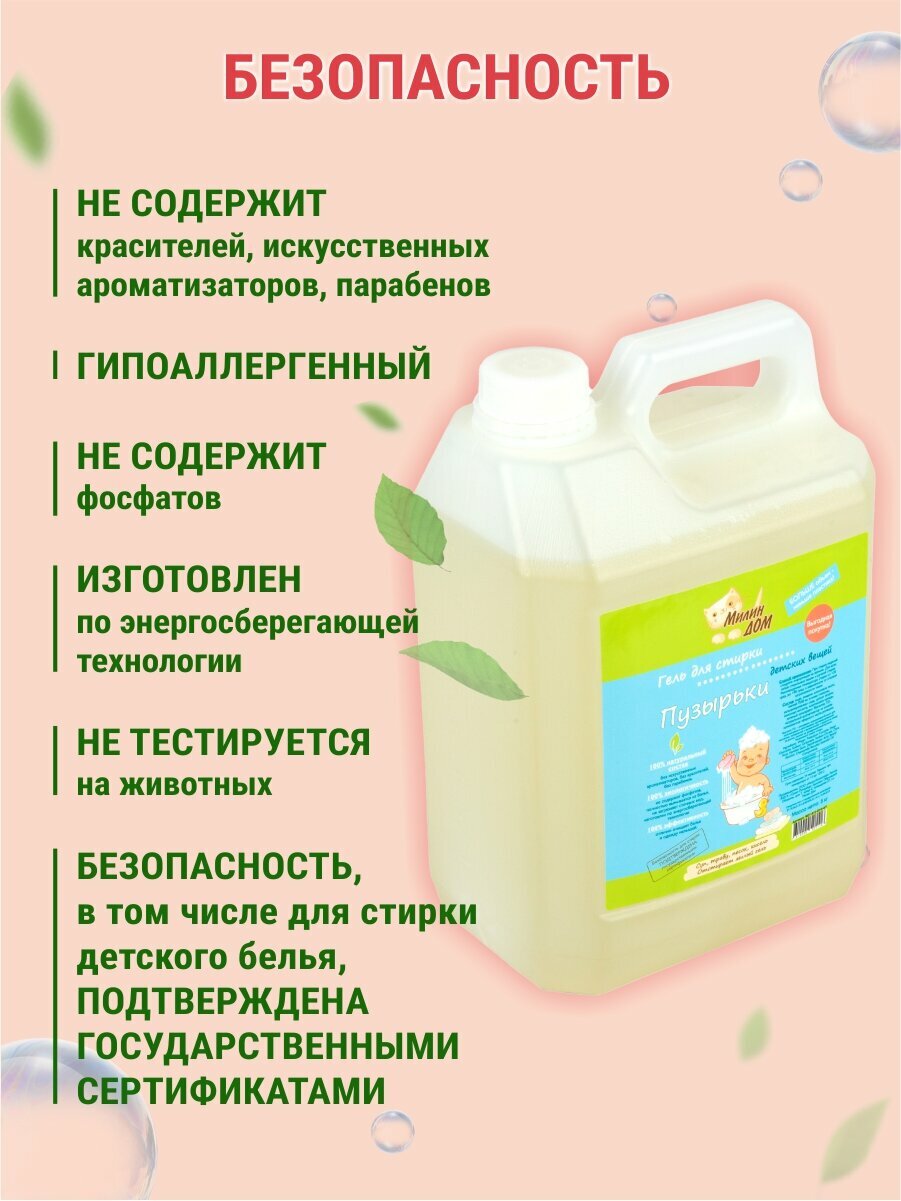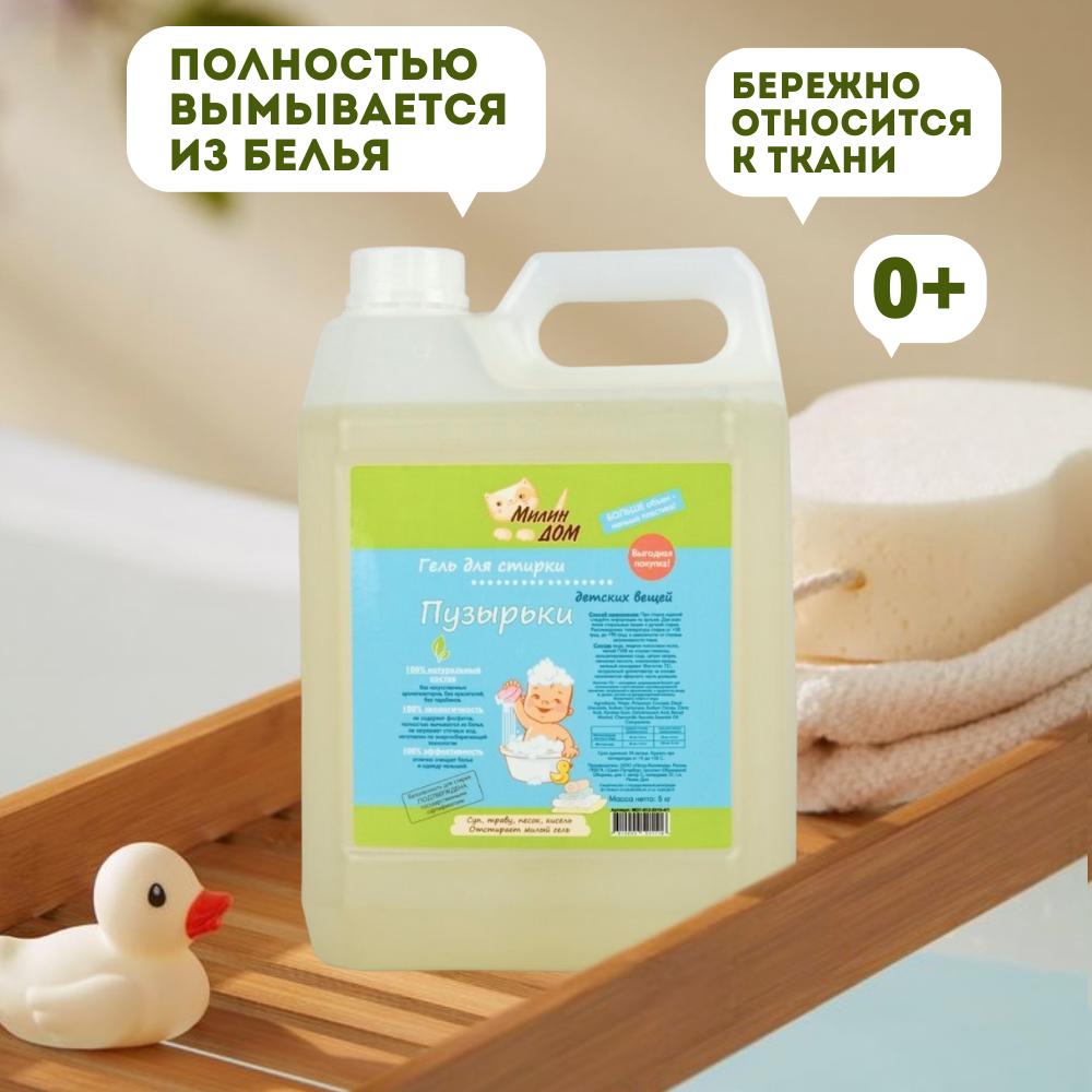 Гель милин ДОМ для стирки детских вещей "Пузырьки" 5000 мл. интересное: